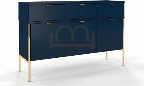 Stylowa komoda w kolorze granatowym na złotych nóżkach. Elegancja w stylu glamour. Modny granatowy kolor sprawdzi się w każdym wnętrzu gdzie chcemy dodać odrobinę elegancji. Komoda bardzo pojemna, dzięki trzem szufladom oraz trzem szafeczkom. Dzięki dużej pojemności można w niej schować zarówno …