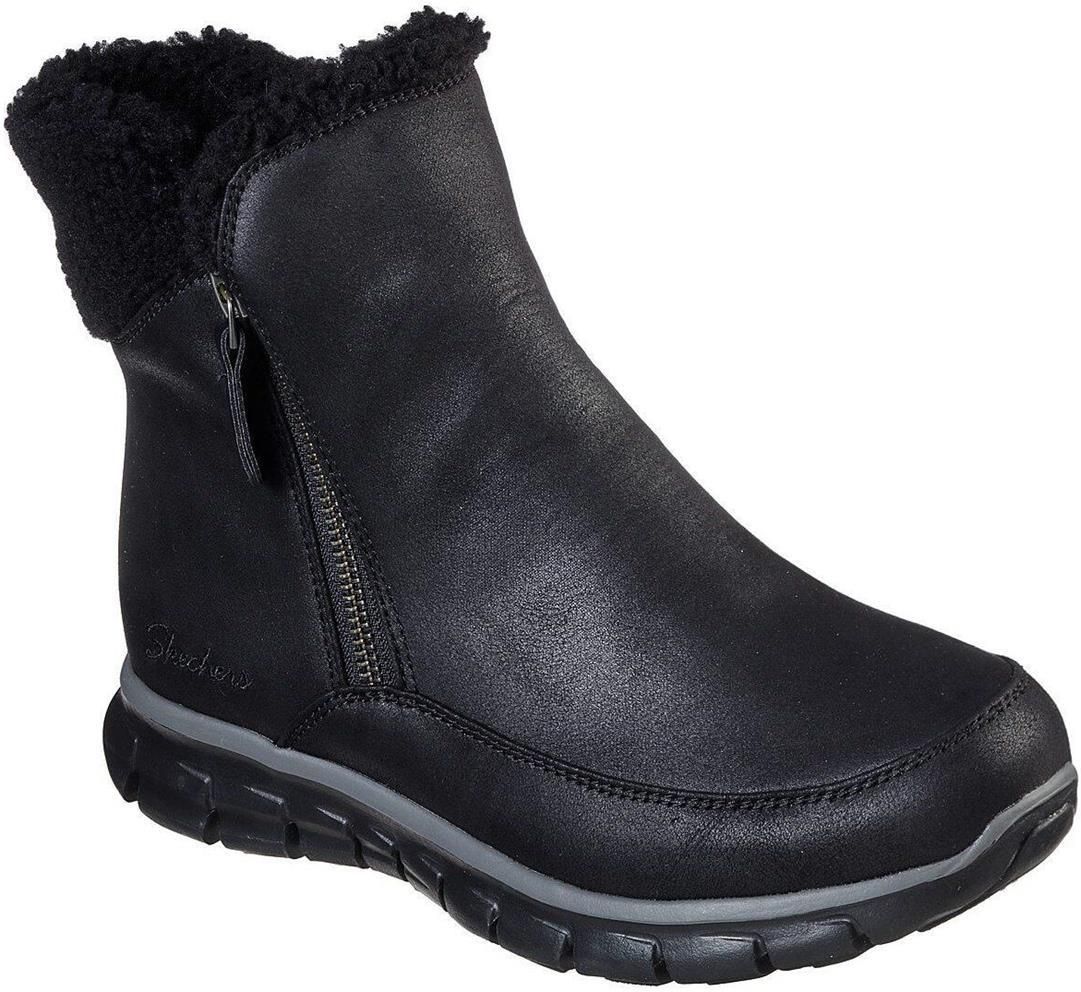 Skechers Synergy Collab damskie kozaki z krótką cholewką, Czarna mikroskóra sztuczna sherpa, 39 EU Szczecin