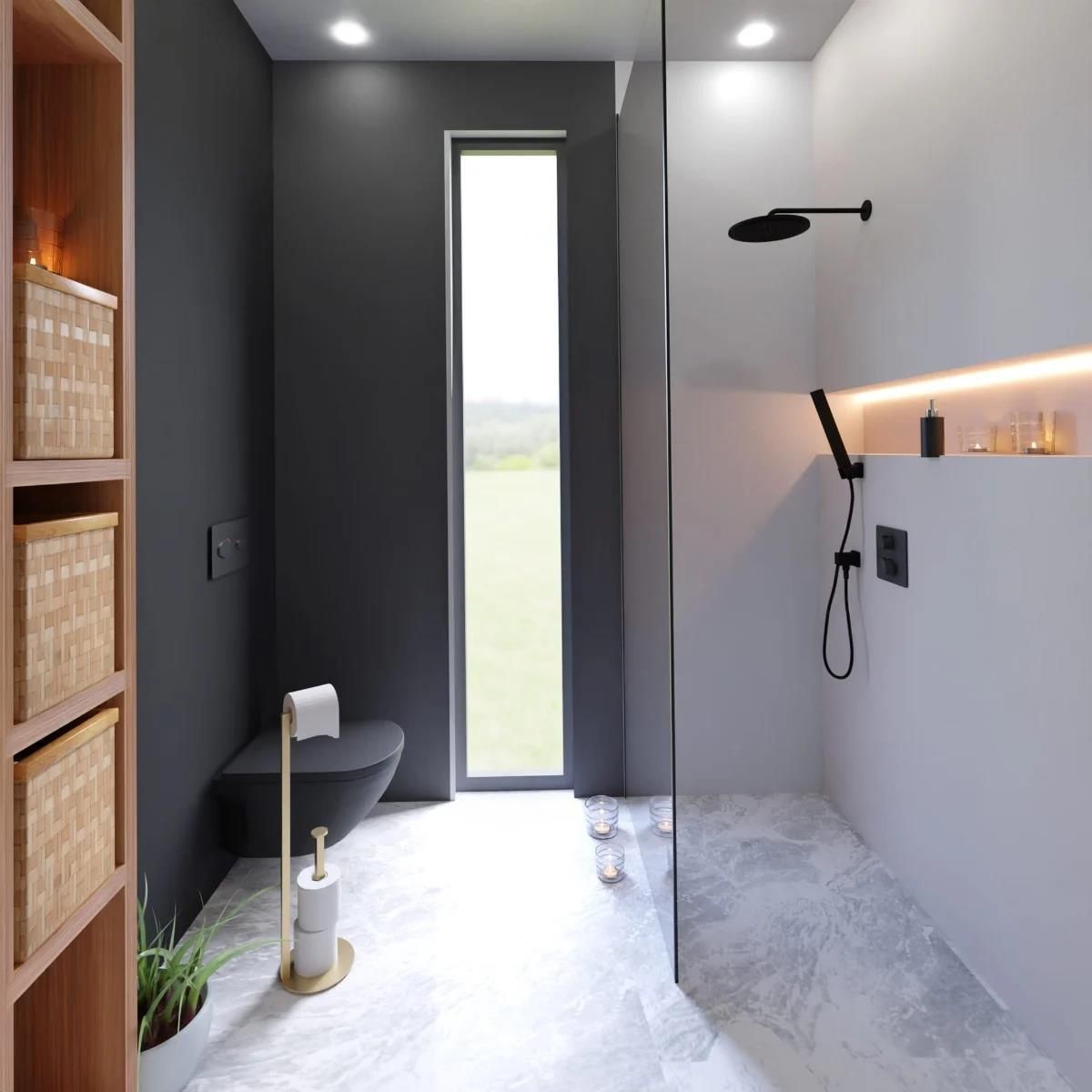 Metalowy złoty stojak na papier AKAR PLUS do łazienki cechuje minimalistyczna konstrukcja i nowoczesny design.