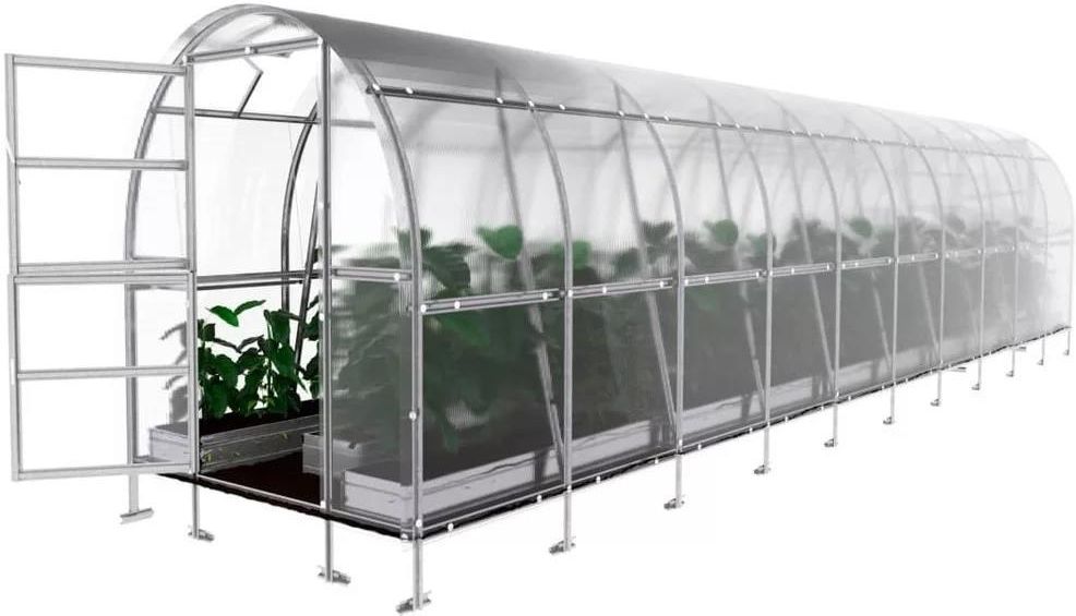 Szklarnia ogrodowa 2x12m z poliwęglanu komorowego 6 mm z fundamentem KLASIKA SLIM UWAGA: Proszę mieć na uwadze, że nie wszystkie zdjęcia tutaj, dotyczą szklarni 2x12m. Szklarnia z tej oferty ma 12 przęseł, odpowiednio co 100 cm i jest długa na 12 metrów. W podstawowym zestawie okno dachowe, jak i półka nie występują. W podstawowym zestawie okno dachowe, jak i półka nie występują. Szklarnia KLASIKA SLIM o nowym półokrągłym kształcie i konstrukcji jest dostosowana do warunków klimatycznych Polski. STANDART Klasika to nowoczesny, kompaktowy, a zarazem niezwykle prosty nowy model szklarni. Profil omega ze stali o grubości 1 mm i szerokości 58 mm ,użyty do budowy szklarni zapewnia wytrzymałość, a jakość użytych materiałów zapewnia trwałość. Profile omega wykonujemy z taśm stalowych ocynkowanych. Wysokość ramy 210 cm idealnie nadają się do uprawy wysokich roślin. A wytrzymałość konstrukcji KLASIKA SLIM pozwoli Ci na przywiązanie roślin (pomidory pnące, ogórki) oraz zawieszenie doniczek i półek bezpośrednio do ramy szklarni. Dzięki prostemu półokrągłemu kształtowi szklarni, zimą śnieg nie będzie przylegał do jej górnej części i znacznie łatwiej będzie się zsuwał. Szklarnia KLASIKA SLIM ma solidną i wysoką podstawę ( fundament ), więc wszystko co potrzebne do mocowania jest już w zestawie. Nie będziesz potrzebował dodatkowych fundamentów, drewna czy innych kosztownych elementów dodatkowych, aby zamocować szklarnię. Oszczędzaj czas i pieniądze! UWAGA : waga szklarni to aż 249 kg co pokazuje jak mocna, stabilna i wytrzymała jest Zalety szklarni KLASIKA SLIM: KLASIKA SLIM górna część drzwi może służyć jako okno/wywietrznik do dodatkowej wentylacji szklarni; Szklarnie KLASIKA SLIM nie są demontowane na zimę, nie trzeba ich rozbierać, nie trzeba zdejmować pokrycia; KLASIKA SLIM - idealny stosunek jakości do ceny! SZKLARNIA KLASIKA SLIM zestaw: Solidny ocynkowany profil omega, o grubości 1 mm i szerokości 58 mm; Solidna podstawa/fundament z kotwami w kształcie odwróconej litery "T" na głębokość 35 cm; Wszystkie niezbędne elementy mocowania - śruby, uszczelki; Z gumową uszczelką; Poliwęglan komorowy 6 mm do samodzielnego przycięcia Drzwi od frontu, mające opcję otwierania samego okna oraz okno na tylnej ścianie; Płyty poliwęglanowe są dostarczane do samodzielnego przycięcia. Podczas montażu postępuj zgodnie z dostarczoną instrukcją montażu. Instrukcja montażu. CERTYFIKAT: UAB „MEISTRO KODAS” otrzymał certyfikat na znak CE wydany przez UAB „KIWA inspecta”. Na podstawie tego certyfikatu oświadczamy, że w procesie produkcji spełniamy wymagania klasy wydajności EXC2 wg EN 1090-1:2009+A1:2011, stali ocynkowanej wg En10346: DX51D+Z. Parametry: szerokość : 200 cm długość : 1200 cm wysokość : 210 cm powierzchnia : 24 m2 waga : 249 kg poliwęglan : 6 mm komorowy do samodzielnego przycięcia kolor ramy : srebrny materiał ramy : stal ocynkowana rozstaw przęseł co 100 cm dopuszczalne obciążenie śniegiem wynoszące 110 kg/m² fundament z kotwami w kształcie odwróconej litery "T" na głębokość 35 cm drzwi od frontu, mające opcję otwierania samego okna oraz okno na tylnej ścianie wyprodukowana na Litwie, z materiałów wyprodukowanych w UE