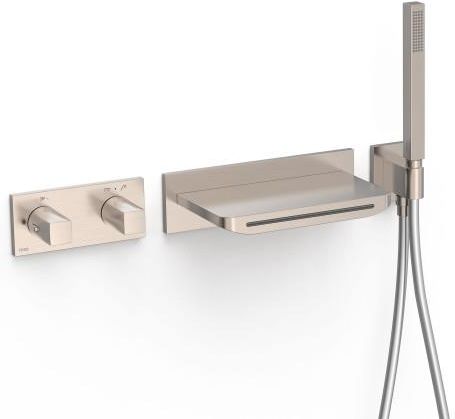 Zestaw baterii termostatycznej podtynkowej 2-drożnej B-system do wanny i prysznica jest to rozwiązanie pozwalające na kontrolę temperatury wody i natężenia strumienia podczas korzystania zarówno z wanny, jak i prysznica Korpus podtynkowy termostatyczny o instalacji poziomej: Jest to element montowany w ścianie, który zawiera mechanizm termostatyczny do kontroli temperatury wody. Instalacja pozioma oznacza, że główne elementy ukrywane są w ścianie, co nadaje łazience estetyczny wygląd. Regulator natężenia przepływu: Pozwala na regulację ilości wypływającej wody, co umożliwia dostosowanie siły strumienia do własnych preferencji. Rozgałęźnik 2-drożny: To urządzenie umożliwiające przełączanie źródła wody między wanną a prysznicem. Dzięki niemu można łatwo wybrać, skąd ma płynąć woda. Pokrętło kwadratowo-okrągłe: Pokrętło służy do regulacji temperatury wody. Kwadratowo-okrągły design może nadawać zestawowi elegancki wygląd. Wylewka stała naścienna z wyjściem wody w formie kaskady: Wylewka dostarcza wodę do wanny lub prysznica. Forma kaskady może tworzyć efekt estetyczny podczas korzystania z wanny. Uchwyt do słuchawki prysznicowej z przyłączem w ścianie: Uchwyt ten umożliwia zawieszenie słuchawki prysznicowej na ścianie, co ułatwia korzystanie z prysznica. Słuchawka prysznicowa z mosiądzu z systemem zapobiegającym osadzaniu się kamienia: Słuchawka prysznicowa wykonana z mosiądzu może być trwała i odporna na osadzanie się kamienia, co utrzymuje wydajność prysznica na wysokim poziomie. Satynowy wąż: Wąż prysznicowy o wykończeniu satynowym jest elastyczny i umożliwia swobodne korzystanie z prysznica. Długotrwały wkład: W zestawie znajduje się wkład, który zapewnia długotrwałą i niezawodną pracę baterii termostatycznej. Element łączący (MURAL G1/2"): Jest to element łączący, który umożliwia podłączenie zestawu do instalacji wodnej. Grupa akustyczna: IIA: To informacja o poziomie hałasu, jaki może generować zestaw podczas pracy. Materiał: Latón bajo contenido en plomo: Oznacza, że materiał użyty do produkcji zestawu zawiera niską zawartość ołowiu, co może być ważne ze względów zdrowotnych. Numer referencyjny głowicy (część zamienna): 29926828: Ten numer może być przydatny w przypadku zamówienia części zamiennych. Odporność na korozję: Zestaw jest odporny na korozję, co oznacza, że będzie trwały i nie podlega uszkodzeniom spowodowanym działaniem wody i wilgoci. Przepływ (l/min): 16: Określa ilość wody, która może przepłynąć przez zestaw w ciągu jednej minuty. Tres Instant: To cecha głowicy termostatycznej, która gwarantuje stały strumień wody i pożądaną temperaturę pomimo zmian ciśnienia lub temperatury. Wkładka do dystrybutora: 29903302: Numer wkładki, która może być używana w zestawie. Wykończenie Stal: Zestaw ma wykończenie stal, które może nadawać mu elegancki i nowoczesny wygląd oraz zapobiegać korozji. Ten zestaw baterii termostatycznej oferuje nie tylko funkcjonalność, ale także estetyczny wygląd oraz trwałość, co sprawia, że jest atrakcyjnym rozwiązaniem do łazienki. Kolekcja podtynkowych baterii termostatycznych B-system charakteryzuje się wyrafinowanym wzornictwem o stonowanych liniach i korpusie lekko odsuniętym od ściany, co daje poczucie unoszenia się w powietrzu. Wewnętrzna puszka podtynkowa pozwala na czystszą i prostszą instalację. B-system to elegancja i komfort pod prysznicem.