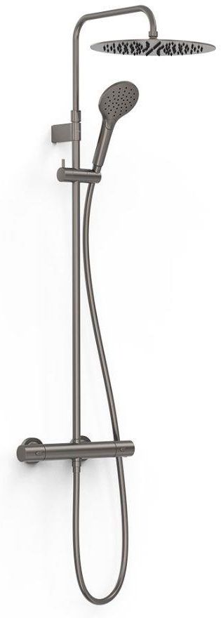 Parametry techniczne · Kolor: grafit (GR) · Typ: zestaw baterii termostatycznej naściennej 2-drożnej · Technologia: Over-wall · Przełącznik funkcji zintegrowany z regulacją wypływu · Pokrętło okrągłe · Deszczownica: Ø 300 mm, stal nierdzewna, regulowana · Wysięg ramienia: 315 mm · Regulowany uchwyt …