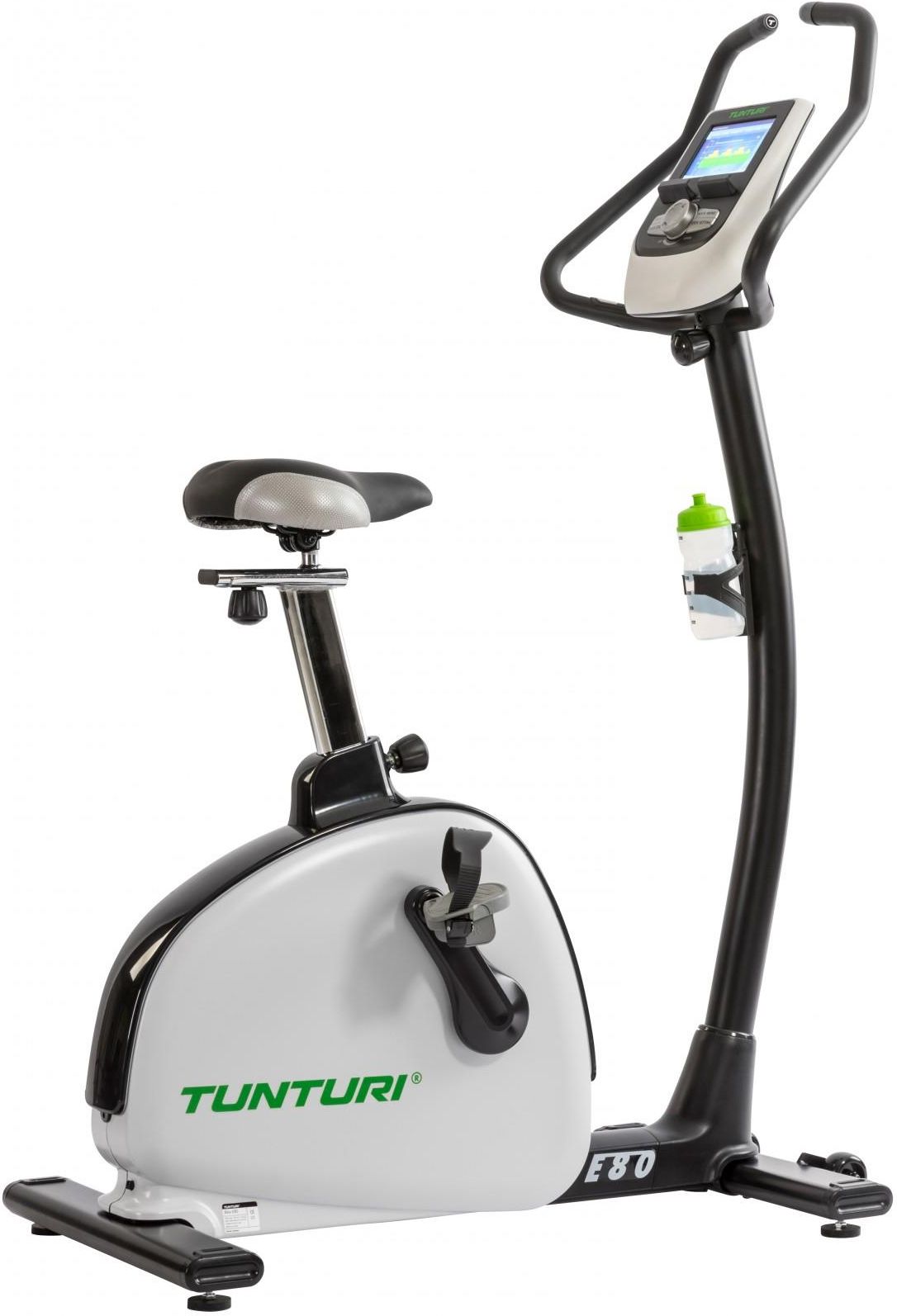 Rotoped TUNTURI E80 EnduranceRotoped Tunturi E80 Endurance z nowej serii oferuje klientom połączenie doskonałej mechaniki i ergonomii ramy w solidnej cenie. Model ten jest przeznaczony zarówno do użytku domowego, jak i w pełni profesjonalnych środowiskach centrów fitness, wellness itp.Konstrukcja ramy zapewnia wygodną i prawidłową pozycję siedzącą zarówno dla drobnych, jak i wyższych osób, z regulowanym nachyleniem kierownicy oraz poziomą i pionową regulacją siodełka. Stabilna i solidna konstrukcja wraz z wysokiej jakości komponentami gwarantuje długą żywotność maszyny nawet w przypadku cięższych osób i predestynuje model do regularnych treningów fitness.Pedałowanie na nim jest absolutnie ciche dzięki indukcyjnemu systemowi hamowania i wysokiej jakości mechanice. Maszyna posiada koło zamachowe o wadze 14 kg, które gwarantuje płynną pracę bieżni. Opór jest regulowany elektronicznie w zakresie 58 stopni. Masywna rama oferuje nośność150 kg.Tunturi E80 Endurance jest wyposażona w przejrzysty komputer z prostym sterowaniem. Mierzy czas, prędkość, spalone kalorie, dystans, RPM i tętno za pomocą czujników dłoni na kierownicy lub za pomocą pasa piersiowego 5-5,4 kHz (pas nie jest dołączony, ale można go kupić).Menu programu oferuje łącznie 43 opcje programów, w tym programy HRC, program Watt, wstępnie ustawione programy lub tryby, takie jak odzyskiwanie itp.Konsola komputera oferuje możliwość połączenia z aplikacją Kinomap. Specyfikacja techniczna: Układ hamulcowy: System elektromagnetyczny (EMS) / koło zamachowe T-Gen Induction Waga: 14 kg Obciążenie (W): 600 Ergometr: tak Zasilanie: Adapter 26V / 2.3A Pedały: Comfort Plus Wymiary po złożeniu (l*w*h*w cm): 102*59*58 Waga trenażera (kg): 47,7 Maksymalna waga użytkownika (kg): 150 Kod produktu: 17TBE80000 Kod EAN: 8717842028308 Wymiary opakowania + waga (l*w*h*w cm - kg): 119*28*68 - 51,2 Ergonomia Regulowany wspornik: tak Kierownica: Multigrip (regulowany kąt) Siodełko: Comfort Plus Regulacja siodełka: poziomo/wysoko Kontaktowy czujnik tętna: tak Wbudowany telemetryczny odbiornik tętna: tak Pas piersiowy (5 - 5,4 Khz): opcjonalny Uchwyt na bidon: uchwyt i bidon Kółka transportowe: tak Wyświetlaczmonitora: 7-calowy kolorowy wyświetlacz TFT LCD Łączna liczba programów: 43 (10 wstępnie ustawionych, 1 Watt, 1 docelowe tętno, 5 T-Ride, 3 T-Road, 1 ręczny, 1 szybki start, 1 test fitness, 20 niestandardowych) Poziom ćwiczeń: 58 Opcjonalne języki: 10 Watt Program: 6 (20 - 440 kroków 1) Test sprawności: wieloetapowy VO2 Max. Czas, dystans, kalorie: tak Bluetooth: tak Port USB: tak / (5V DC - 2.1A) Aplikacja na urządzenia inteligentne (Android/iOS): Kinomap Controlled Uchwyt na tablet: tak Doskonała gwarancja Dożywotnia gwarancja na ramę urządzenia: 3 lata na pozostałe komponenty Lekkiezastosowania komercyjne: 2 lata gwarancji na wszystkie podzespoły Inne informacje - użytek domowy, lekki użytek komercyjny, użytek komercyjny DIN EN 957