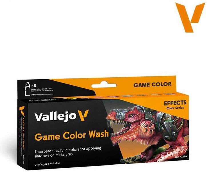 VALLEJO 72190 Game Color Zestaw 8 farb - Game Color Wash Zawartość: 8 x 18 ml/0.57 fl oz Game Color 72.208 Yellow 72.204 Flesh 72.206 Red 72.209 Violet 72.207 Blue 72.203 Umber 72.200 Sepia 72.201 Black Nasz zestaw oferuje wybór podkładek zaprojektowanych tak, aby wydobyć najdrobniejsze szczegóły …