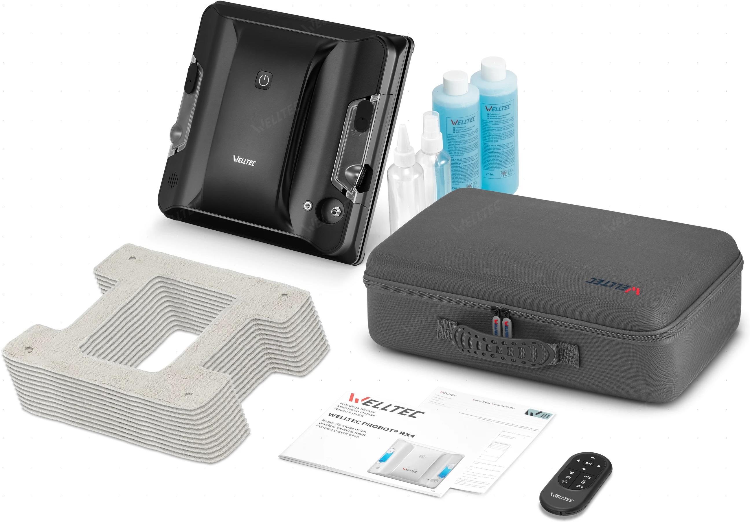 Roboty do mycia okien Welltec Roboty do mycia okien Welltec to nowoczesne urządzenia przeznaczone do dokładnego czyszczenia pionowych gładkich powierzchni takich jak szkło, płytki czy panele. Stanowią idealne rozwiązanie do utrzymania czystości okien i szklanych drzwi, kuchni, łazienek czy witryn wystawowych. Wykorzystują najbardziej innowacyjne i zaawansowane rozwiązania technologiczne dostępne na rynku. Zalety robota do mycia okien Welltec RX4 Pro 5 lat przyjaznej, pro-Klienckiej gwarancji door-to-door do różnego rodzaju powierzchni czyszczenie na sucho i mokro ponad 20-elementowy zestaw akcesoriów 2 ultradźwiękowe spryskiwacze - przystosowane do stosowania ze środkami do mycia okien najszybszy na rynku - 1,6 min / m² ogromna moc ssąca - aż do 4000 Pa zaawansowany system nawigacji SLAM 5.0 najcichszy robot do mycia okien Welltec 12 ściereczek czyszczących z mikrofibry w zestawie czujnik ciśnienia powietrza - automatyczne dostosowywanie mocy ssącej w zależności od stopnia zabrudzenia czujniki krawędzi - możliwość czyszczenia okien bezramowych zastosowanie do bardzo cienkich szyb - o grubości od 3 mm wbudowany żyroskop wydajny silnik bezszczotkowy napęd gąsienicowy - systematyczne i dokładne czyszczenie w ruchu liniowym 4 tryby automatyczne, w tym tryb podwójnego czyszczenia tryb sterowania ręcznego funkcja automatycznego spryskiwania możliwość ręcznego uruchomienia spryskiwaczy automatyczny powrót do punktu początkowego po zakończeniu czyszczenia pilot zdalnego sterowania zdalne sterowanie przez aplikację WiFi komunikaty głosowe robota w języku polskim z możliwością wyciszenia możliwość ustawienia powiadomień Push w aplikacji Tuya awaryjne zasilanie akumulatorowe UPS - do 20 minut linka zabezpieczająca z solidnym karabińczykiem i śrubą wkręcaną w robota przewód zasilający, zasilacz i przedłużacz o łącznej długości aż 7,5 m walizka na robota i akcesoria w zestawie Robot do mycia okien Welltec RX4 Pro RX4 Pro to najnowszy robot do mycia okien Welltec o stylowym i nowoczesnym designie, który zapewnia jeszcze dokładniejsze sprzątanie. Urządzenie zostało wyposażone w najwydajniejszy silnik bezszczotkowy. Generuje on ogromną moc ssącą wynoszącą aż do 4000 Pa. Zaawansowany, gąsienicowy system napędowy umożliwia robotowi bardzo szybkie i wydajne czyszczenie. Urządzenie umyje 1 m² powierzchni w zaledwie 1,6 minuty, co czyni RX4 Pro najszybszym robotem do mycia okien na rynku. System ssący umożliwia robotowi zachowanie odpowiedniego balansu pomiędzy bezpiecznym utrzymywaniem się na pionowej powierzchni, a swobodą poruszania się po niej. Zapewnia on także odpowiedni docisk ściereczki czyszczącej do mytego obszaru. Wbudowany czujnik ciśnienia powietrza pozwala urządzeniu automatycznie regulować siłę ssącą w zależności od charakteru powierzchni i stopnia jej zabrudzenia. Welltec RX4 Pro - czyszczenie Welltec RX4 Pro, może czyścić na sucho i mokro. Mycie na mokro pozwala robotowi osiągnąć najlepsze rezultaty. Wystarczy delikatnie nasączyć ściereczkę płynem do mycia okien, wykorzystując dołączoną do zestawu butelkę ze spryskiwaczem i umieścić robota na wybranej powierzchni. Do utrzymania odpowiedniej wilgotności ściereczki RX4 Pro wykorzystuje 2 ultradźwiękowe spryskiwacze. Dysze spryskiwaczy wytwarzają mgiełkę z cząsteczkami o wielkości zaledwie 12 mikrometrów. Pozwala to równomiernie rozprowadzać odpowiednią ilość płynu na czyszczonej powierzchni. Spryskiwacze przystosowane są do rozpylania nie tylko wody ale i środków czyszczących. Spryskiwanie może pracować w trybie automatycznym lub być wyłączone. Istnieje także manualnego uruchomienia spryskiwaczy przez użytkownika w zależności od potrzeb. Czyszczenie na sucho robot wykonuje za pomocą suchej ściereczki i wyłączonych spryskiwaczy. Zalecane jest jako wstępny etap w przypadku bardzo zabrudzonych powierzchni. Tryb ten pozwala usunąć zanieczyszczenia mogące porysować czyszczoną powierzchnie, jak np. piasek czy duże ilości kurzu. Welltec RX4 Pro - ściereczki W zestawie z robotem RX4 Pro znajduje się aż 12 ściereczek czyszczących. Są wykonane z delikatnej mikrofibry zaprojektowanej specjalnie do czyszczenia szklanych powierzchni. Tak duża ilość zapasowych ściereczek pozwala często je wymieniać podczas pracy co znacznie podnosi efektywność mycia okien. Welltec RX4 Pro - system nawigacji Robot do mycia okien Welltec RX4 Pro posiada niedościgniony, zaawansowany system nawigacji SLAM 5.0, stanowiący najnowszą wersję, w której udoskonalono precyzję pracy. W połączeniu z precyzyjnymi czujnikami krawędzi umożliwia on urządzeniu dokładne określenie położenia brzegów czyszczonej powierzchni. RX4 Pro po umieszczeniu na środku wybranej powierzchni odnajduje jej brzeg. Następnie porusza się, tworząc inteligentnie zaplanowaną ścieżkę równoległych linii, które systematycznie obejmują całą czyszczoną powierzchnię. Gdy robot zakończy mycie, samodzielnie powraca do punktu początkowego. Welltec RX4 Pro - tryby pracy Robot Welltec RX4 Pro posiada 4 automatyczne tryby pracy, obejmujące 3 tryby kierunkowe oraz tryb podwójnego czyszczenia. W trybie kierunkowym (w lewo, w górę lub w prawo) robot przemieszcza się w wyznaczoną stronę i następnie czyści w poziomie od góry do dołu. Tryb podwójnego czyszczenia zapewnia większą dokładność mycia. W tym trybie robot najpierw porusza się w poziomie z góry na dół, a następnie czyści tę samą powierzchnie drugi raz w pionie od lewej do prawej. Dostępny jest także tryb sterowania ręcznego. Pozwala on użytkownikowi manualnie określać kierunek, w którym ma poruszać się robot. Welltec RX4 Pro - sterowanie Welltec RX4 Pro uruchamia się za pomocą przycisku zasilania na obudowie robota. Jego krótkie wciśnięcie pozwala także włączyć tryb automatycznego sprzątana. Zaawansowanymi funkcjami robot