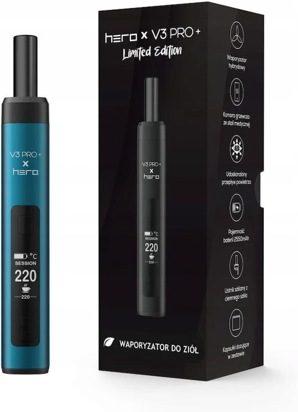 V3 PRO+ X HERO LIMITOWANA EDYCJA PLUS Odkryj moc waporyzacji z V3 PRO PLUS x HERO Limited Edition kolor niebieski Twój najlepszy wybór w świecie waporyzatorów do ziół V3 PRO+ X HERO Limited Edition to nie tylko waporyzator do ziół, to właściwie rewolucja w doświadczeniu waporyzacyjnym. Od samego projektowania do finalnego efektu, ten model jest wyjątkowy pod wieloma względami. Z uwagi na zaawansowane technologie, innowacyjne podejście do projektowania oraz nieustanne dążenie do doskonałości, V3 PRO+ X HERO Limited Edition jest uznawany za bezsprzecznego lidera w kategorii waporyzatorów do ziół. Jego niezrównana jakość wykonania i wydajność zdobyły uznanie i zaufanie użytkowników na całym świecie. Każdy aspekt V3 PRO+ X HERO Limited Edition został starannie przemyślany i zaprojektowany tak, aby zapewnić użytkownikowi niezapomniane doznania podczas inhalacji ziół. Od ergonomicznego kształtu po intuicyjne sterowanie, wszystko zostało dopracowane w najdrobniejszych szczegółach, aby zapewnić maksymalną satysfakcję użytkownika. V3 PRO+ X HERO Limited Edition to nie tylko waporyzator - to prawdziwa skarbnica innowacyjnych rozwiązań. Dzięki zaawansowanym funkcjom, takim jak precyzyjna kontrola temperatury, szybkie nagrzewanie się, tryb ON DEMAND oraz łatwa wymiana komponentów, ten model umożliwia spersonalizowane doznania waporyzacyjne, dostosowane do indywidualnych preferencji użytkownika. Innowacyjny design V3 PRO+ X HERO Limited Edition V3 PRO nie ogranicza się jedynie do funkcji waporyzacyjnych, ale podąża również ścieżką nowoczesnego designu, który rewolucjonizuje tradycyjne podejście do tego typu urządzeń. Wyróżniając się spośród innych waporyzatorów, ten model zachwyca swoim estetycznym wyglądem i wyjątkową funkcjonalnością. Od pierwszego spojrzenia można dostrzec, że V3 PRO to waporyzator z przyszłości. Jego minimalistyczny, elegancki design sprawia, że stanowi on nie tylko narzędzie do waporyzacji, ale także estetyczny element wnętrza, który z dumą można eksponować. Projektanci V3 PRO zwrócili szczególną uwagę na ergonomiczność użytkowania. Dzięki starannie zaprojektowanym kształtom i odpowiednio wyprofilowanym powierzchniom, waporyzator doskonale leży w dłoni, zapewniając wygodę podczas trwania sesji waporyzacyjnych. Bez względu na to, czy trzymasz go przez kilka minut czy dłużej, V3 PRO pozostaje komfortowy w użytkowaniu. V3 PRO to połączenie estetyki z funkcjonalnością. Każdy detal został starannie przemyślany, aby nie tylko przyciągać uwagę swoim wyglądem, ale także poprawiać doświadczenie użytkownika. Od wygodnego uchwytu po ergonomicznie umieszczone przyciski kontrolne, wszystko zostało zaprojektowane z myślą o wygodzie i satysfakcji użytkownika. Wszystko to sprawia, że V3 PRO to nie tylko waporyzator - to również designerski dodatek do Twojej przestrzeni życiowej, który nie tylko wyróżnia się w tłumie, ale także zapewnia niezapomniane doznania waporyzacyjne każdemu użytkownikowi. Zaawansowane funkcje które podnoszą komfort waporyzacji ziół Waporyzator V3 PRO+ X HERO Limited Edition wyróżnia się nie tylko swoim eleganckim designem, ale również zaawansowanymi funkcjami, które pozwalają użytkownikowi na dostosowanie doznań waporyzacyjnych do swoich indywidualnych preferencji. Jedną z kluczowych cech, która wyróżnia V3 PRO+ X HERO Limited Edition na tle innych waporyzatorów, jest możliwość precyzyjnej kontroli temperatury. Dzięki tej funkcji użytkownik może dokładnie dostosować temperaturę do waporyzacji różnych rodzajów ziół, co przekłada się na optymalne doznania smakowe i aromatyczne. Waporyzator V3 PRO+ X HERO Limited Edition oferuje również funkcję szybkiego nagrzewania ON DEMAND, co oznacza, że użytkownik może błyskawicznie osiągnąć pożądaną temperaturę w krótkim czasie. To idealne rozwiązanie dla tych, którzy cenią sobie szybkość i wygodę w użytkowaniu waporyzatora, umożliwiając im szybkie rozpoczęcie sesji inhalacji ziół bez czekania. Dzięki połączeniu precyzyjnej kontroli temperatury i szybkiego nagrzewania ON DEMAND, waporyzator V3 PRO+ X HERO Limited Edition umożliwia spersonalizowane doznania waporyzacyjne, które są idealnie dopasowane do preferencji każdego użytkownika. Bez względu na to, czy preferujesz delikatne i subtelne aromaty, czy intensywne i głębokie smaki, ten waporyzator pozwoli Ci osiągnąć dokładnie to, czego oczekujesz. Dzięki tym zaawansowanym funkcjom, V3 PRO+ X HERO Limited Edition nie tylko zapewnia niezapomniane doznania waporyzacyjne, ale także daje użytkownikowi pełną kontrolę nad swoim doświadczeniem, co sprawia, że jest on idealnym wyborem dla każdego entuzjasty waporyzacji. Ulepszony szklany czarny ustnik z magnesem który wyróżnia ten limitowany model W najnowszej wersji V3 PRO+ X HERO Limited Edition, inżynierowie skupili się na udoskonaleniu użytkowego doświadczenia poprzez wprowadzenie ulepszonego szklanego ustnika z magnesem. Jest to innowacyjna cecha, która nie tylko podnosi wygodę użytkowania, ale również przynosi szereg korzyści dla użytkownika. Szklany ustnik, wykonany w głębokim odcieniu czerni, nie tylko nadaje waporyzatorowi V3 PRO+ X HERO Limited Edition elegancki wygląd, ale także stanowi estetyczne dopełnienie całościowego designu urządzenia. Jest to idealne połączenie stylu z funkcjonalnością. Innowacyjne zastosowanie magnetycznego zapięcia sprawia, że korzystanie z tego szklanego ustnika jest niezwykle proste i intuicyjne. Dzięki magnetycznemu mechanizmowi, ustnik można łatwo przymocować do urządzenia, zapewniając stabilność i pewność podczas waporyzacji. Magnetyczne zapięcie nie tylko podnosi wygodę użytkowania, ale także zapewnia doskonałą integrację szklanego ustnika z głównym korpusu waporyzatora. Dzięki temu użytkownik może cieszyć się spójnym i harmonijnym
