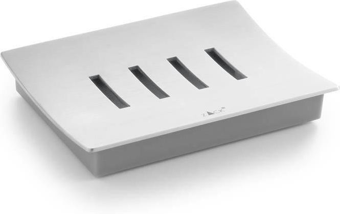Mydelniczka. Plastikowy ociekacz. Gumowe nóżki zapobiegają rysowaniu blatu. Stal nierdzewna 18/10 matowa Wymiary: szerokość 9 cm, długość 12 cm Materiał: stal nierdzewna 18/10 matowa, tworzywo sztuczne, guma Symbol: 40321