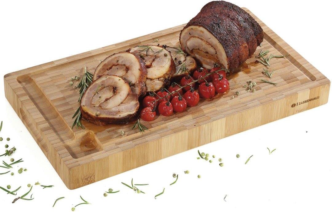 Zassenhaus - blok do krojenia, bambus, 45 x 25 x 4 cm Bambusowy blok do krojenia. * może być używany po obu stronach * wcięcia po bokach służące za uchwyty ułatwiają podnoszenie * rowek przy krawędzi zbierający soki wypływające z krojonych produktów * wykonany z bambusa - naturalnego i szybko odnawialnego Materiał:u Wymiary: * 45 x 25 x 4 cm Materiał: * bambus