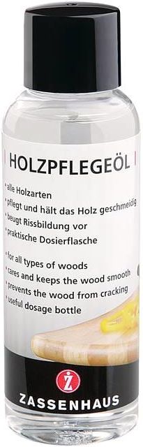 Jak prawidłowo pielęgnować i utrzymać w najlepszym stanie drewniane deski do krojenia, chlebaki, noże i sztućce z drewnianą rączką? Należy je co jakiś czas impregnować przy pomocy specjalnego oleju. Przyda się do tego olej do impregnacji drewna niemieckiej marki Zassenhaus, który nadaje się do pielęgnacji wszystkich, drewnianych elementów wyposażenia kuchni, które mają kontakt z żywnością. lej jest bezpieczny, nie zmienia smaku i jest oparty na naturalnych olejach spożywczych. Wystarczy natrzeć drewniane elementy przy pomocy zmoczonej w oleju szmatce. Nadaje się do każdego gatunku drewna oraz bambusa. Wymiary: pojemność 0,1l
