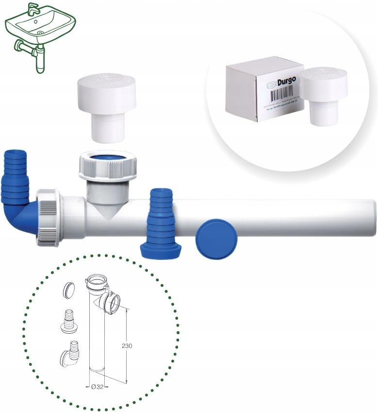 Zawór napowietrzający Durgo dn32 z trójnikiem przeciw bulgotaniu do łazienki Automatyczny zawór napowietrzający zapobiegający bulgotaniu w rurach Montaż: na wylocie syfonu do umywalki, bidetu czy zlewu Zestaw zawiera syfon, przedłużkę, napowietrzacz oraz adapter (widoczne na zdjęciu) Kolor: biały Wykonane z wysokiej jakości materiału Zawór napowietrzający Durgo - podstawowe dane przepływ powietrza 6,9l/s. Polecany do montażu przy syfonie niczym nieograniczony, specjalnie wyprofilowany wlot dla stałego dopływu powietrza specjalnie zaprojektowany do instalacji w miejscach o granicznej przestrzeni 10 lat gwarancji idealnie sprawdzi się przy zlewie czy umywalce Przykład montażu Bezobsługowy, automatyczny zawór napowietrzający zapobiegający bulgotaniu w rurach Durgo DN32 Wymiarowanie Szczegółowy rys. techniczny dostępny do pobrania w formacie PDF w załączniku do produktu Dlaczego Durgo Firma DURGO z ponad 45 letnim doświadczeniem jest pionierem w produkcji jedynych w swoim rodzaju BEZOBSŁUGOWYCH zaworów napowietrzających, z unikalną membraną zastrzeżoną międzynarodowym patentem. Zawór napowietrzający DURGO zapewnia doprowadzenie powietrza do systemu kanalizacyjnego, umożliwiając prawidłową jego pracę. Zapobiega zasysaniu wody z syfonu, a tym samym wydostawania się przykrych zapachów i szkodliwych gazów. koniec kosztownego i ryzykownego prowadzenia odpowietrzania kanalizacji ponad dach koniec z nieprzyjemnym zapachem z kanalizacji koniec wysysania wody z syfonu czy bulgotaniem w armaturze Wszystkie szczegółowe informację są dostępne na stronie dystrybutora