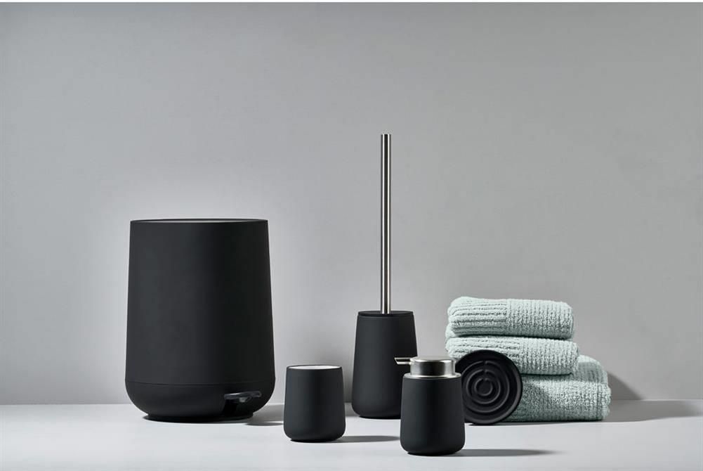 Zone Denmark - Szczotka do WC Nova czarna Nova, nasza wielokrotnie nagradzana seria łazienkowa, emanuje luksusem i nastrojem jak w spa dzięki uroczej, aksamitnej powierzchni w dotyku i nowoczesnemu wzornictwu – przyjemność dla oka i palców. Ta szczotka do WC będzie idealnym wypełnieniem każdej łazienki. nowoczesny design stabilna podstawa higieniczna wysoka jakość