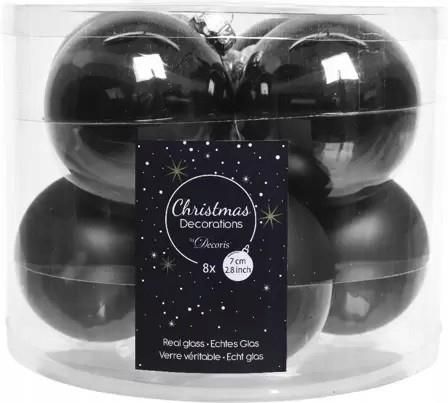 Dekoracja nada się jako element kompozycji lub samodzielna ozdoba. Można zawiesić je na choince bądź stroiku świątecznym. Zestaw zawiera 8 sztuk bombek. Stanowią idealną dekorację świąteczną w każdym domu. Parametry: Szerokość: 7 cm Materiał wykonania: szkło Motyw: bombki świąteczne Kolor dominujący: czarny Ilość sztuk: 8 Kształt: okrągły Zastosowanie: świąteczna ozdoba wnętrza domu, choinki
