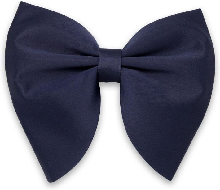 Duża granatowa mucha damska z regulowanym zapięciem, opakowana w prezentowe pudełko