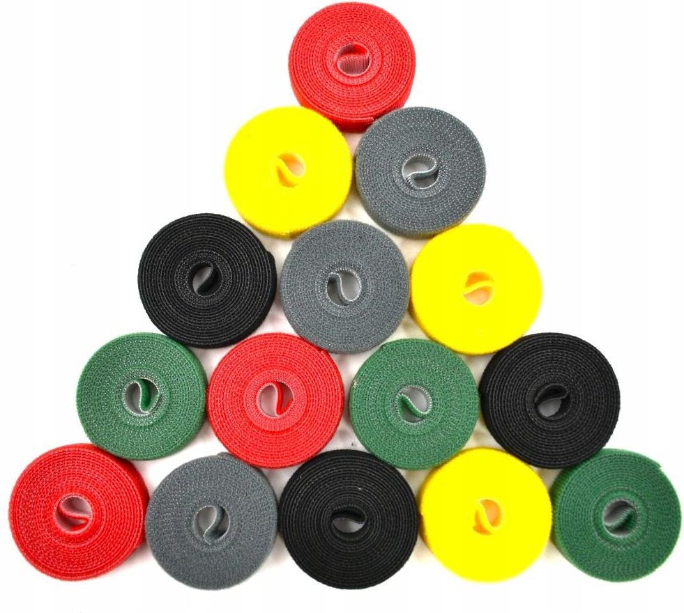 Zestaw taśm rzepowych do organizacji kabli – 15 rolek (5 kolorów) Praktyczny zestaw 15 rolek taśmy rzepowej o szerokości 15 mm i długości ok. 1,5 m (±5%) każda. Gotowe do użycia bez plątania i bałaganu. Zestaw obejmuje 15 rolek (po ok. 1,5 m każda) 5 kolorów: szary, czarny, żółty, zielony, czerwony Zastosowanie porządkowanie kabli w biurze, serwerowni, warsztacie czy domu, wiązanie i oznaczanie przewodów, ładowarek, kabli audio/wideo, itp., możliwość kolorowego oznaczenia kabli, co znacznie ułatwia rozeznanie się w dużej i chaotycznej plątaninie przewodów. Zalety wielokrotnego użytku, szybkie mocowanie bez nożyczek i kleju, elastyczna i trwała struktura taśmy, estetyczne i praktyczne przechowywanie.