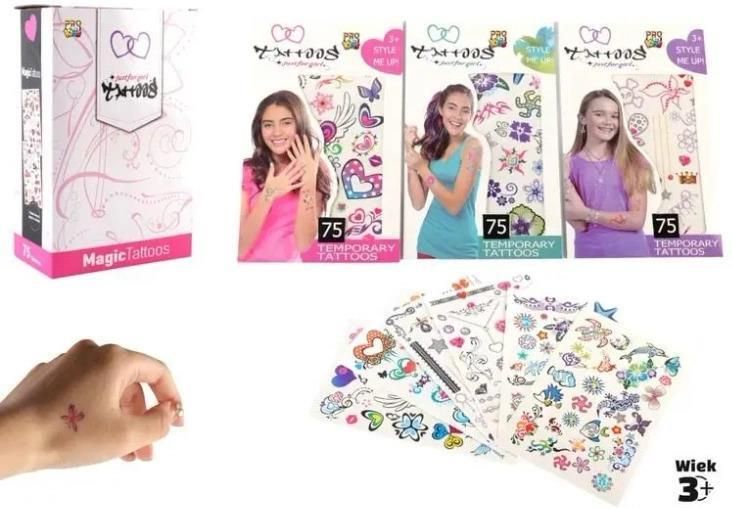 Mix wzorów, towar wysyłany losowo. Magic Tattoos to zestaw 75 uroczych, tymczasowych tatuaży, który zachwyci każdą młodą damę pragnącą dodać trochę koloru i zabawy do swojego stylu. Z łatwością aplikowane i bezpieczne dla skóry, te tatuaże są doskonałym sposobem na wyrażenie siebie bez trwałego …