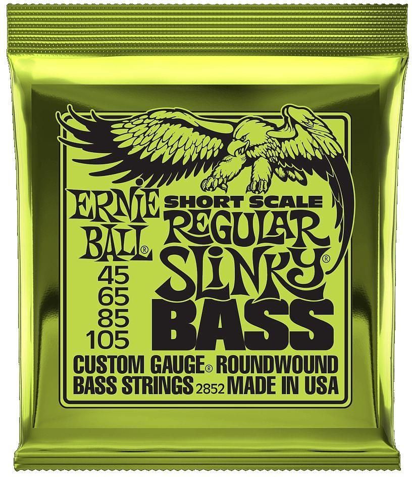 ERNIE BALL EB 2850 seria NICKEL WOUND BASS - zestaw 4 strun do gitary basowejErnie Ball 2852 Short Scale Reguklar Slinky Bass: zestaw 4 strun do gitary basowej z serii Slinky Nickel Wound Bass, która oferuje jasny, zrównoważony ton. Struny zostały zaprojektowane tak, aby pasowały do basów o menzurze do 775 mm. Rdzeń struny to sześciokątny drut z wysokowęglowej stali owinięte drutem stalowym, niklowany dla klasycznego, zrównoważonego brzmienia o doskonałej intonacji i spójności. Końce kulek na strunach są wykonane z mosiężnego walca, który jest obrabiany i cięty zgodnie z wymagającymi specyfikacjami, aby zapewnić dokładne dopasowanie i funkcjonalność. Grubości strun: 0,045, 0,065, 0,085, .105 (zwykłe).