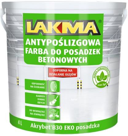 LAKMA farba do betonu posadzki AKRYBET B-30 EKO 4L Kolor: szary AKRYBET B-30 EKO POSADZKA to najwyższej jakości ekologiczna, bezrozpuszczalnikowa akrylowa farba do dekoracyjno - ochronnego malowania posadzek betonowych i innych poziomych podłoży mineralnych. Farba posiada wysoką odporność na stałe …