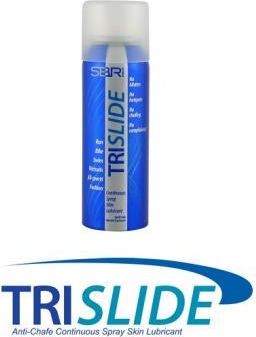 TRISLIDE silikon w sprayu Trislide to najpopularniejszy preparat ochronny do ciała ułatwiający zakładanie i przede wszystkim szybkie ściąganie pianek triathlonowych. Trislide to wodoodporny silikon w sprayu, który zapobiega otarciom, odciskom, pęcherzom w wygodnej i higienicznej postaci aerozolu. Produkt w łatwy i komfortowy sposób nanosi się na skórę w postaci sprayu. Rozpylany bezpośrednio na skórę w stawach, ułatwia i przyspiesza zakładanie i zdejmowanie pianki triathlonowej. Jest bezpieczny do stosowania pod wszelkiego rodzaju stroje neoprenowe. Trislide nie niszczy neoprenu i odzieży poliestrowej, dlatego doskonale się nadaje dla triathlonistów, którzy dbają o swoje często wysokiej jakości pianki. Trislide nie tylko znakomicie eliminuje otarcia, ale również doskonale zwalcza pęcherze i odciski na stopach biegaczy, jak również pozostałe podrażnienia skóry (wewnętrzna strona ud, pachy, podrażnienia od sportowych staników, klatka piersiowa, szyja). Produkt utrzymuje się godzinami i nie pozostawia tłustej, niekomfortowej warstwy na skórze. Po treningu łatwo zmyć go mydłem i ciepłą wodą. Wykorzystywany w wielu dyscyplinach sportowych, jak pływanie, bieganie, kolarstwo. skutecznie zapobiega przeciw otarciom skóry przeciwdziała powstawaniu pęcherzy pozwala zapobiegać otarciom od siodełka ułatwia zakładanie pianek neoprenowych i kombinezonów technicznych jest zmywalny ze skóry i powierzchni wodą z mydłem bezpieczny dla większości tkanin sportowych odporny na pot / wodoodporny łatwy w użyciu i higienicznym dzieleniu bezbarwny i bezwonny