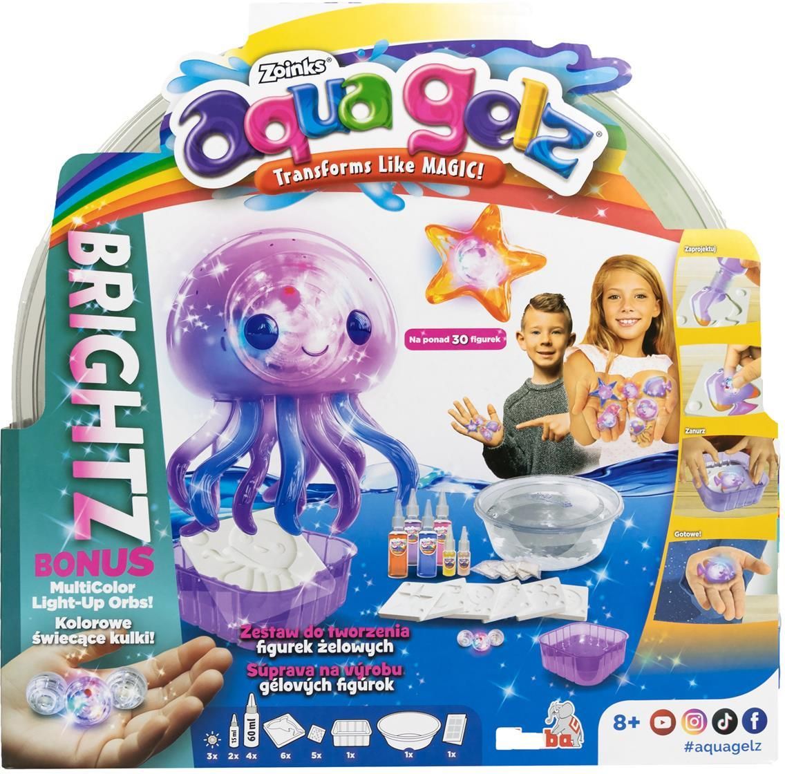 Aqua Gelz Duży Zestaw Kreatywny Deluxe Brightz świecące kulki Został stworzony przez cenioną za wysoką jakość produktów firmę Simba. Aqua Gelz to zabawa kreatywna dla ciekawych, chcących rozwijać dziecięce pasje. Polega ona na tworzeniu miękkich stworków 3D przy pomocy mieszanki magicznego roztworu i kolorowego żelu. Proszek Aqua Gelz trzeba dobrze wymieszać w pojemniku z wodą, a następnie wybrać foremkę, wypełnić ją kolorowymi żelami i gdy jest już gotowe, zanurzyć je w wodzie delikatnie poruszając w prawo i lewo. Żelowy stworek w ciągu kilku sekund zmienia się z płaskiego rysunku we wspaniałą figurkę 3D, sam wypłynie z foremki i można się nim bawić. Natomiast pod wpływem latarki UV zwierzątka świecą! Dzięki temu zestawowi najmłodsi mogą poznać cudowny świat kolorowych i plastycznych żeli oraz własnych zdolności i wrażeń estetycznych. Aqua Gelz Deluxe Brightz to kreatywna zabawka, która pozwala dzieciom tworzyć niezwykłe żelowe figurki. Wystarczy odrobina wyobraźni, kilka prostych kroków i gotowe - magiczne, błyszczące kulki można podziwiać lub wykorzystać do zabawy. Po wystawieniu na światło dzienne lub sztuczne, kule świecą / błyszczą, tworząc niesamowity efekt wizualny. To nie tylko świetna zabawa, ale też okazja do eksperymentowania z kolorami, światłem i kreatywnymi pomysłami. Co wyróżnia zestaw Efekt świecenia- gotowe żelowe kulki nabierają blasku po naświetleniu. Kreatywna zabawa - dziecko samodzielnie tworzy, miesza i obserwuje proces przemiany żelu w gotową figurkę. Bezpieczne materiały - żele i formy są zaprojektowane z myślą o dzieciach. Zestaw typu Deluxe - zawiera wszystkie potrzebne elementy do zabawy i tworzenia wielu świecących piłek. Opakowanie zabawki można wykorzystać jako pojemnik wielokrotnego użytku do wody. w zestawie: 3 kulki, 6 buteleczek z płynem (2 x 15 ml, 4 x 60 ml), 6 foremek, opakowanie, pojemnik, instrukcja pozwoli na stworzenie ok. 30 figurek zabawka przeznaczona dla dzieci od 8 roku życia wymaga opieki rodzicielskiej zawiera substancję chemiczną, która jest nieszkodliwa w postaci rozpuszczalnej do użytku domowego wymiary opakowania: 27,5 x 8 x 27,5 cm kod producenta: 106322960