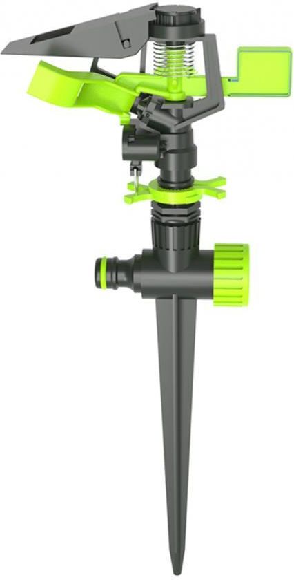 Zraszacz pulsacyjny na szpilce Zraszacz pulsacyjny na szpilce to praktyczne urządzenie nawadniające, przeznaczone do efektywnego podlewania średnich i dużych powierzchni ogrodowych. Dzięki swojej konstrukcji i mechanizmowi pulsacyjnemu, zraszacz ten jest szczególnie skuteczny w równomiernym nawadnianiu roślinności na rozległych terenach, takich jak trawniki, pola sportowe czy duże ogrody. Szpilka z tworzywa sztucznego: Szpilka służy do stabilnego umocowania zraszacza w ziemi. Jest wykonana z trwałego tworzywa sztucznego, które jest lekkie i odporne na korozję, co pozwala na łatwe przenoszenie i ustawianie zraszacza w różnych miejscach ogrodu. Korpus zraszacza: Główny korpus zraszacza, w tym głowica zraszająca i mechanizm pulsacyjny, jest również wykonany z tworzywa sztucznego. To zapewnia trwałość i odporność na warunki zewnętrzne. Mechanizm pulsacyjny: Zraszacz pulsacyjny działa na zasadzie pulsującego strumienia wody, który jest wyrzucany z głowicy w regularnych interwałach, zapewniając równomierne pokrycie obszaru nawadniania. Parametry Kolory dominujące: czarny, szary, zielony. Materiał: ABS, TPR. Metalowa szpilka umożliwiająca stabilne mocowanie. Zalety Użyte materiały gwarantują solidność, trwałość oraz lekkość. Kompatybilność - możemy go łączyć z produktami innych marek.