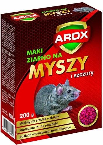 AROX Trutka na myszy i szczury ZIARNO PLUS, 200 g AROX Trutka na myszy i szczury to skuteczny i łatwy w stosowaniu preparat w formie zatrutego ziarna. > Środek przeznaczony do zwalczania: - szczura śniadego (Rattus rattus) - wędrownego (Rattus norvegicus), - myszy domowej (Mus musculus) - nornika polnego (Microtus arvalis), Trutki można używać zarówno wewnątrz, jak i wokół budynków.