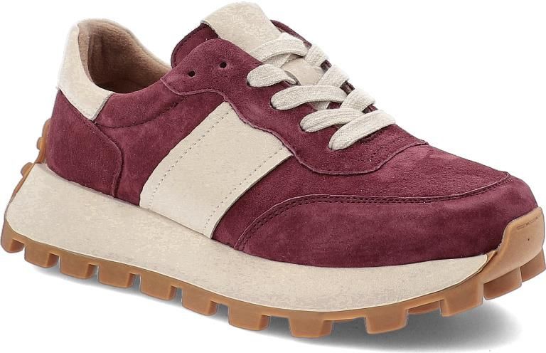Sneakersy damskie Filippo, na grubej platformie ze skóry naturalnej sznurowane i z okrągłym noskiem, bordowe, DP7112-25-BG
