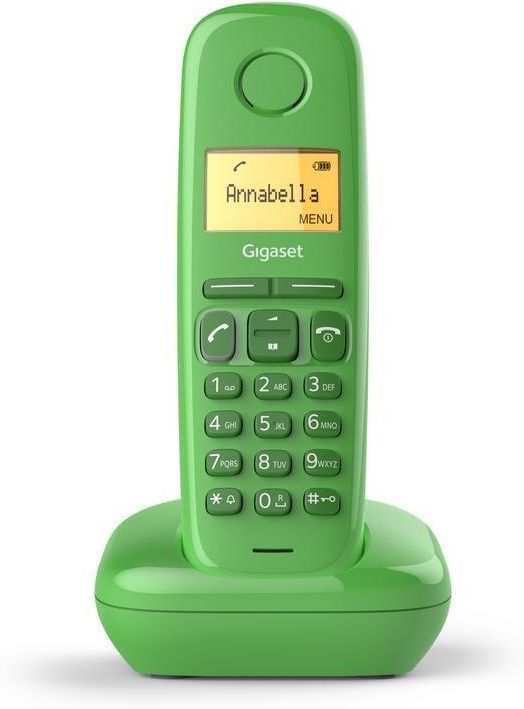Telefon, który spełnia twoje wymagania - prosty, łatwy w obsłudze i w przystępnej cenie. Odkryj Gigaset A170. Podstawowy, solidny telefon bezprzewodowy w jakości made-in-Germany. Przyjazne w obsłudze przyciski z akustycznym potwierdzeniem naciśnięcia powodują, że wybieranie numeru staje się bezproblemowe. Duży, podświetlany, graficzny wyświetlacz ułatwia odczytanie. Dzięki fabrycznemu zalogowaniu słuchawki na bazie, telefon nie wymaga wstępnej konfiguracji, lecz tylko podłączenia do sieci. I jeszcze jedna rzecz, o którą nie musisz się martwić: tryb Eco Mode Plus z wyłączeniem promieniowania radiowego powoduje, że wybór tego telefonu jest przyjazny dla środowiska.  Przekonująca jasność: podświetlany graficzny wyświetlacz w kolorze bursztynowym. Wart większej uwagi: duży wyświetlacz graficzny w nowym A170 wyraźnie kontrastuje napisy oraz cyfry. Dzięki temu przeglądanie książki telefonicznej lub listy połączeń staje się bardzo łatwe. Wyświetlacz A170 jest także podświetlany dla łatwiejszej obsługi w ciągu dnia i nocy. Łatwy nie tylko na pierwszy rzut oka: wygoda obsługi upraszcza wszystko. Solidny bezprzewodowy telefon Gigaset A170 w dostępnej cenie, oferuje podstawowe funkcje: przyciski z akustycznym potwierdzeniem naciśnięcia powodują, że wybieranie staje się wyjątkowo wygodne, a ustawienia plug & play umożliwiają użycie telefonu zaraz po rozpakowaniu. I na koniec: telefon stacjonarny Gigaset A170 pozwala na ciągłe rozmowy do 18 godzin i pozostaje w stanie czuwania do 200 godzin bez ładowania. Utrzymywanie połączeń w pamięci: wygodne zachowanie danych w telefonie. Codzienne telefonowanie jest jeszcze wygodniejsze z Gigaset A170, zapamiętującym 25 ostatnich nieodebranych i odebranych rozmów na liście połączeń. Telefon posiada także oddzielną listę ostatnich 10 wybieranych numerów w celu szybkiego oddzwaniania. Wszystkie najważniejsze numery znajdują się pod ręką, wpisane do książki telefonicznej o pojemności do 50 kontaktów. To oznacza, że przyjaciele i rodzina są zawsze w zasięgu, po naciśnięciu kilku przycisków. Zawsze do usług: wszystkie informacje jakich potrzebujesz. Ciesz się szybkim dostępem do wszystkich informacji, jakich potrzebujesz w ciągu dnia, a także w momencie, gdy ktoś do Ciebie dzwoni: Gigaset A170 pokazuje datę, czas rozmowy oraz przezentację numeru na wyświetlaczu. Zawsze będziesz wiedział kto dzwoni gdy usłyszysz wywołanie. Czy wiedziałeś, że możesz używać A170 nie tylko jako telefonu? Jeśli potrzebujesz przypomnienia, po prostu użyj funkcji alarmu. Zacznij od czegoś więcej: dodatkowa słuchawka do Twojego domu. Potrzebujesz telefonu Gigaset A170 w dwóch różnych pomieszczeniach? Mamy dla Ciebie doskonałe rozwiązanie: bezprzewodowy telefon Gigaset A170 jest dostępny także z dwoma słuchawkami jako wersja duo. Witamy w ekologicznym domu: funkcja ECO DECT dla redukcji fal radiowych. Jak wszystkie telefony bezprzewodowe Gigaset, A170 jest wyposażony w przyjazną dla środowiska technologię ECO DECT. To oznacza, że telefon nie emituje fal radiowych w czasie czuwania nawet w przypadku zalogowania kilku słuchawek wspierających technologię ECO DECT.  Podczas rozmowy moc transmisji jest automatycznie dostosowana do odległości słuchawki od stacji bazowej. Im krótszy dystans tym mniejsze promieniowanie. Dla osiągnięcia maksymalnego zasięgu tryb ECO DECT może być wyłączony w każdym momencie.
