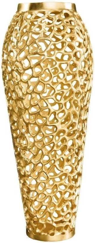 WAZON ABSTRACT LEAF 64 CM ZŁOTY Wazon ABSTRACT LEAF to znakomity dodatek do każdego pomieszczenia, który sprawdzi się idealnie we wnętrzach w stylu nowoczesnym oraz glamour, gdzie dzięki swojej formie doda przestrzeń niezwykłego charakteru. Wyjątkowość wazonu stanowi jego kształt oraz wygląd odzwierciedlający pajęczynę, wzór ten wykonywany jest za pomocą frezowania ręcznego ze stopu metalowo-aluminiowego, dzięki czemu kusi swoją unikalnością oraz niepowtarzalnością. Złote wykończenie dodaje mu luksusowego charakteru, a abstrakcyjna forma przyciąga wzrok i wprowadza do wnętrza nutę nowoczesnej elegancji. Wazon ABSTRACT LEAF sprawdzi się znakomicie w każdym wnętrzu, gdzie stanie się nie tylko piękną ozdobą, ale także funkcjonalnym elementem pozwalającym na prezentowanie kwiatów czy innych dekoracji. W serii ABSTRACT LEAF występują także inne wazony, stoliki kawowe, dekoracje, miski oraz lustra - patrz produkty powiązane. Produkt jest wykonany z surowców naturalnych, przez co może różnić się od prezentowanych zdjęć. Wszystkie przetarcia, szczeliny oraz nierówności są zamierzone. Każdy produkt jest przez to unikalny i oryginalny. Invicta Interior to niezawodny dostawca ekskluzywnych designerskich mebli i akcesoriów domowych. Jest to dynamiczna i doświadczona firma z wieloletnimi międzynarodowymi kontaktami i stale poszukującą nowych produktów i innowacyjnych pomysłów. Dojrzała ogólna koncepcja firmy pozwala zaoferować klientom duży wybór nowoczesnych i klasycznych mebli o wyjątkowej jakości w rozsądnych cenach. Invicta Interior monitoruje wszystkie aktualne trendy w branży meblowej, dlatego klienci zawsze otrzymują najnowsze i najwyższej jakości designerskie meble.