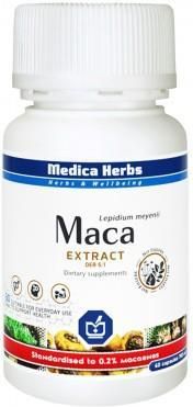 MACA 680mg PLUS Absorblend* 22mg - suplement diety - 702 mg - 60 kapsułek MACA WYCIĄG wspiera prawidłowy stan fizyczny organizmu (poziom energii oraz wytrzymałości). Dzięki zawartości m.in. Macaene & Macamidów wspomaga właściwe funkcjonowanie układu hormonalnego mężczyzn oraz kobiet, przez co wspiera utrzymanie prawidłowej sprawności seksualnej i płodności. Przyczynia się dodatkowo do utrzymania właściwego stanu psychicznego (wspiera naturalny stan odprężenia oraz prawidłową koncentrację umysłu). Produkt ziołowe firmy Medica Herbs SĄ TESTOWANE ANALITYCZNIE w celu zapewnienia stałego stężenia składników aktywnych oraz skuteczności działania. PREZENTOWANY PRODUKT JEST POTWIERDZONY JAKOŚCIOWO. SKŁADNIKI: Wyciąg pozyskany z korzenia rośliny Lepidium meyenii standaryzowany do 0,2% Macaene & Macamidów (Drug Extract Ratio - 5:1), mieszanka ziołowa AbsorBlend, żelatyna (składnik kapsułki). Produkt bez substancji dodatkowych. _________________________________________________________________________________________ SPOSÓB UŻYCIA: 1 kapsułka 1-2 razy dziennie, najlepiej przyjmować pomiędzy posiłkami. Nie przekraczać zalecanej porcji do spożycia w ciągu dnia. Produkt nie może być stosowany jako substytut prawidłowo zróżnicowanej diety. _________________________________________________________________________________________ PRZECIWWSKAZANIA: Nie stosować u kobiet w ciąży oraz karmiących piersią. Nie przekraczać zalecanej porcji do spożycia w ciągu dnia. Suplement diety nie może być stosowany jako substytut (zamiennik) zróżnicowanej diety. Dla zdrowia ważne jest stosowanie zbilansowanej i zróżnicowanej diety oraz zdrowego trybu życia. Nie stosować w przypadku uczulenia na którykolwiek ze składników produktu. _________________________________________________________________________________________ PRZECHOWYWANIE: Przechowywać w temperaturze pokojowej, w sposób niedostępny dla małych dzieci. _________________________________________________________________________________________ OPAKOWANIE: 60 kapsułek. Dwie kapsułki zawierają 1360 mg wyciągu z Lepidium meyeni oraz 44 mg AbsorBlend * _________________________________________________________________________________________ WAGA NETTO: 42,12 g _________________________________________________________________________________________ INFORMACJE O PRODUCENCIE: Medica Herbs dbając o satysfakcję swoich klientów wykorzystuje tylko wysokiej klasy surowce. Dla zapewnienia bezwzględnej jakości surowców, każda partia poddawana jest kontroli organoleptycznej oraz analitycznej. Firma stara się aby najwyższa jakość produktów była oferowana w przystępnych cenach. Czystość i jakość produktów Medica Herbs jest CERTYFIKOWANA PRZEZ NIEZALEŻNE LABORATORIUM - lidera jakości na światowym rynku badań sektora farmaceutycznego, suplementów diety oraz żywności. Wszystkie produkty spełniają kryteria zawarte w rozporządzeniu Farmakopea Europejska 6.0 oraz spełniają standardy GMP i HACCP, zgodnie z normami UE.