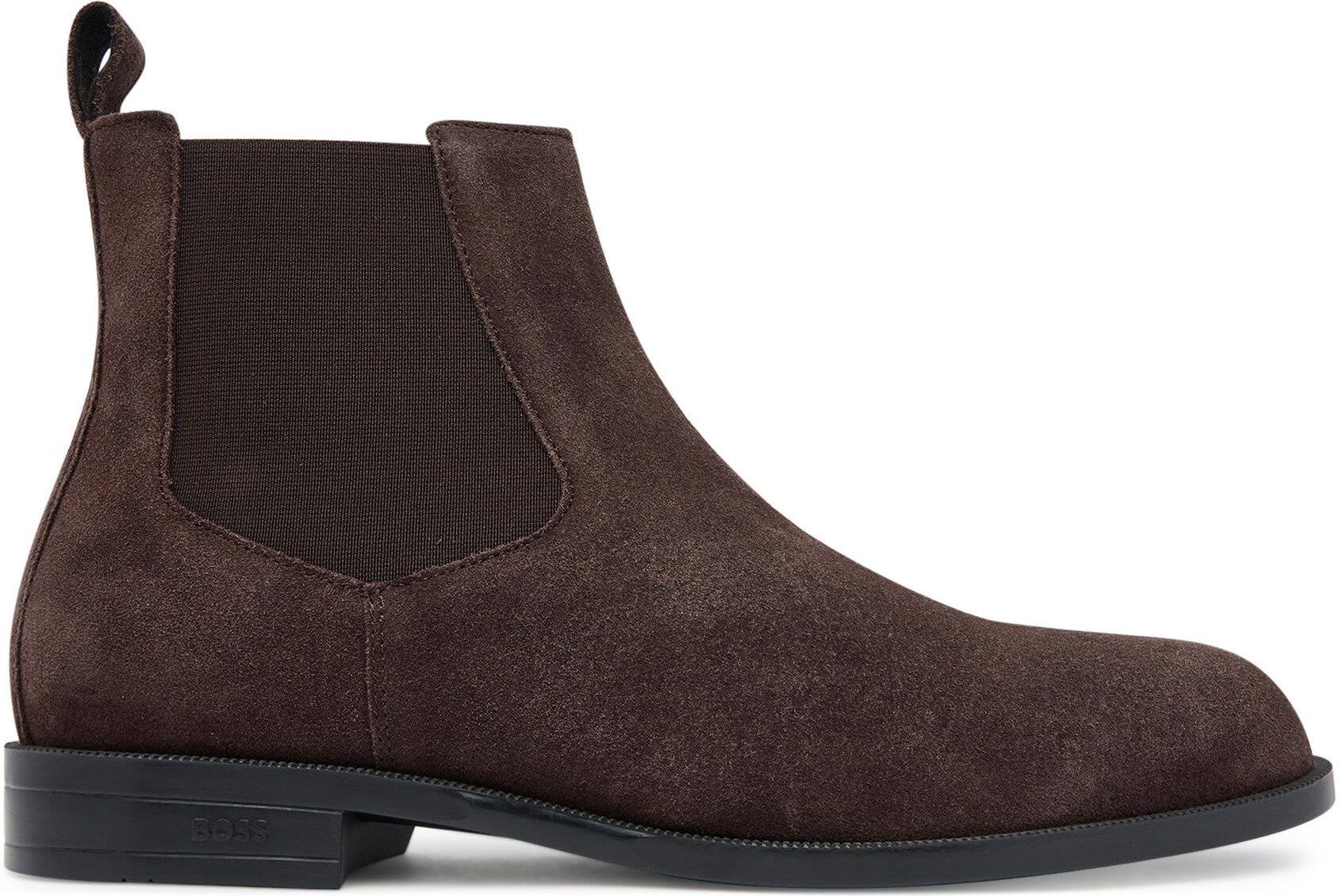 Dodaj do swojej garderoby odrobinę klasy i wygody dzięki męskim sztybletom marki BOSS! Wykonane z wysokiej jakości skóry naturalnej zamszowej, buty te zachwycają elegancją i trwałością. Wsuwana konstrukcja oraz gumowy klin w cholewce zapewniają szybkie zakładanie i idealne dopasowanie, co czyni je wyjątkowo praktycznym wyborem. Okrągły nosek dodaje im ponadczasowego charakteru, który sprawdzi się zarówno w codziennych, jak i bardziej formalnych stylizacjach. Sztyblety BOSS to propozycja dla mężczyzn ceniących komfort i styl w najlepszym wydaniu!