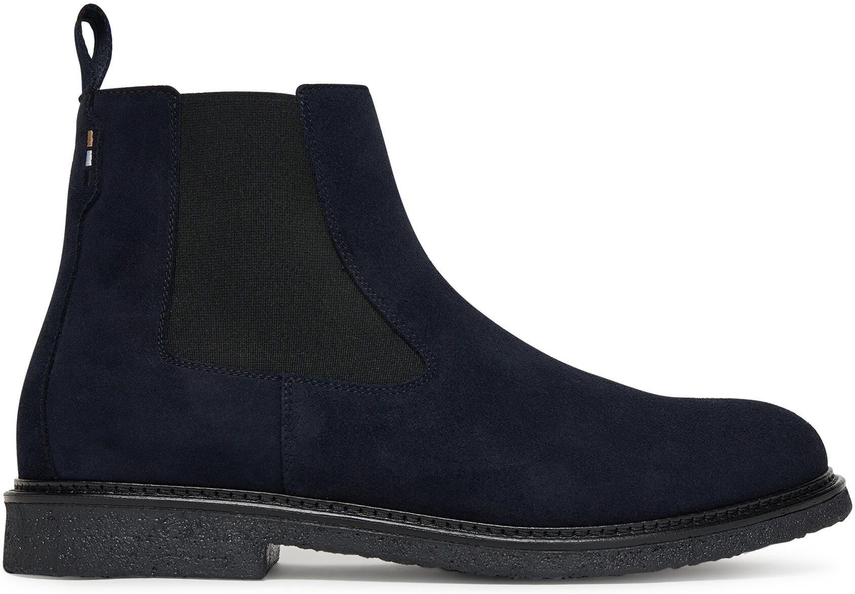 Dodaj do swojej garderoby odrobinę klasy z męskimi sztybletami marki BOSS! Wykonane z niezwykle eleganckiej skóry naturalnej zamszowej, te buty oferują ponadczasowy styl i wysoki komfort noszenia. Wsuwana konstrukcja ułatwia szybkie zakładanie, a gumowy klin w cholewce zapewnia idealne dopasowanie do stopy. Okrągły nosek nadaje im uniwersalnego charakteru, dzięki czemu świetnie sprawdzą się zarówno w codziennych, jak i bardziej formalnych stylizacjach. Postaw na jakość i wyrafinowany styl z marką BOSS!