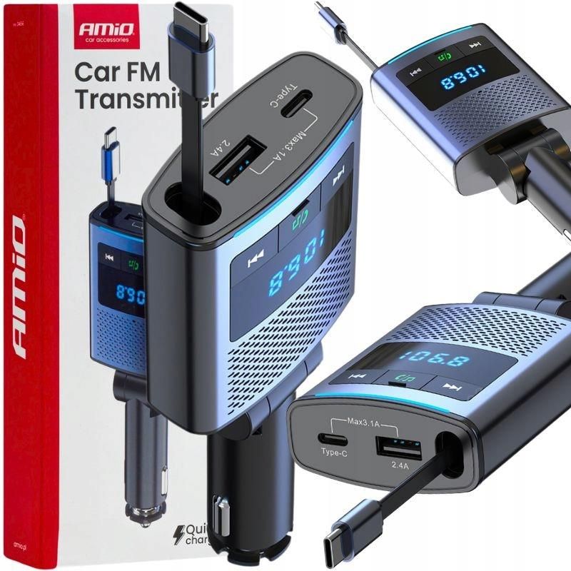TRANSMITER SAMOCHODOWY FM BLUETOOTH 1xUSB-A 1xUSB-C 12V 24V ŁADOWARKA HI-FI Wielofunkcyjny transmiter FM z modułem Bluetooth i wbudowanym, wysuwanym kablem USB-C to wygodne rozwiązanie dla kierowców, którzy chcą ładować urządzenia bez używania dodatkowych przewodów. Umożliwia odtwarzanie muzyki z wielu źródeł oraz bezpieczne rozmowy głośnomówiące, modernizując klasyczne radio bez Bluetooth. ✅ Port USB-A do ładowania lub odtwarzania z pendrive’a ✅ Port USB-C do szybkiego ładowania ✅ Wbudowany wysuwany kabel USB-C – zawsze pod ręką ✅ Wbudowany mikrofon Hands-free ✅ Intuicyjne przyciski sterujące Idealny dla kierowców, którzy chcą mieć porządek w kablu USB-C i możliwość jednoczesnego ładowania dwóch urządzeń. Indeks: ARTA1536 Producent: AMiO Co cechuje nasz produkt? Wysoka jakość wykonania oraz niska cena wyróżnia nas na tle konkurencji. Możesz być pewny, że otrzymasz towar w pełni wartościowy. Stabilna transmisja FM w zakresie 87,5–108 MHz gwarantuje czysty i wyraźny dźwięk, a możliwość przesyłania muzyki przez Bluetooth lub USB daje pełną elastyczność. Kompaktowa konstrukcja sprawdzi się w codziennym użytkowaniu, zapewniając wygodę i bezpieczeństwo podczas jazdy. Specyfikacja techniczna ✔️ Port USB-A: ładowanie / pendrive ✔️ Port USB-C: szybkie ładowanie ✔️ Kabel USB-C: wbudowany wysuwany (Retractable) ✔️ Mikrofon: wbudowany (Hands-free) ✔️ Transmisja: Bluetooth / USB + FM 87,5–108 MHz ✔️ Sterowanie: przyciski funkcyjne ✔️ Zasilanie: 12–24 V (gniazdo zapalniczki) ✔️ Kompatybilność: Android / iOS Zestaw zawiera ✔️ Transmiter FM Bluetooth z wysuwanym kablem USB-C ✔️ Instrukcję obsługi ✔️ Oryginalne opakowanie producenta
