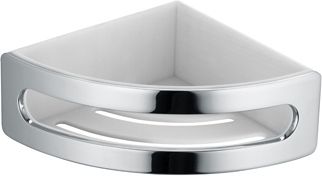 Półka narożna pod prysznic z wyjmowaną trwałą plastikową wkładką kolor chrom/biały materiał: metal/plastik rozmiar całkowity: 180 x 180 x 70 mm Łatwa do czyszczenia i trwała powierzchnia ukryty załącznik montaż ścienny