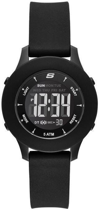 Skechers Zegarek Damski Rosecrans Mid Black Odważny styl i wygoda łączą się w mini zegarku Skechers Rosencrans Digital, wyposażonym w plastikową obudowę z błyszczącym wykończeniem, silikonowy pasek i cyfrowy wyświetlacz w ikonicznym stylu sportowym Skechers.