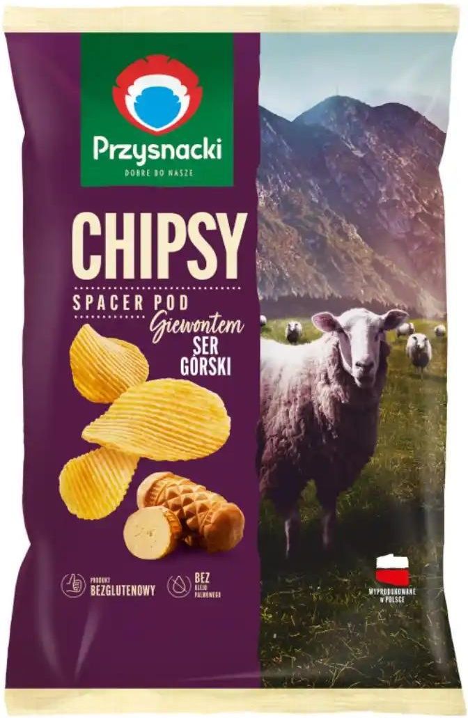 Zestaw Przysnacki Chipsy Ziemniaczane o Smaku Sera Górskiego 130g 9 szt Przysnacki Chipsy Spacer pod Giewontem to pyszne, karbowane chipsy ziemniaczane o intensywnym smaku sera górskiego, inspirowane tradycyjnymi smakami Podhala. To idealna przekąska na każdą porę dnia – wyjątkowo chrupiąca i …