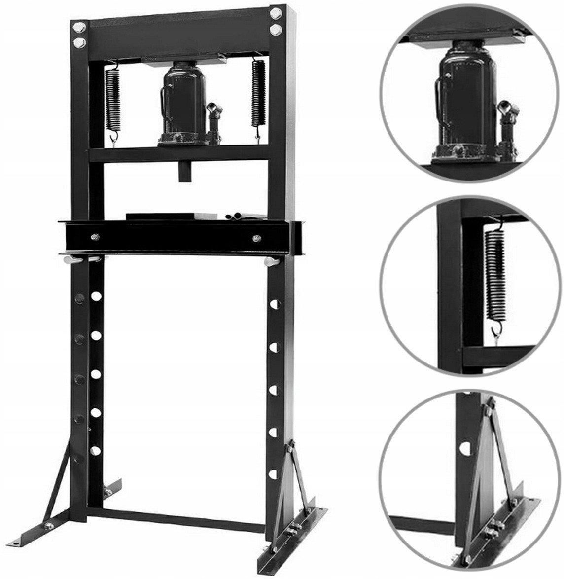 PRASA HYDRAULICZNA 20T PODŁOGOWA kod produktu: F-20001 OPIS PRODUKTU Prasa przyda się w każdym dużym jak i małym warsztacie ,posłuży do wyginania, wciskania przepychania , czynności które w każdym zakładzie są wykonywanie prawie codziennie Wyciskanie, wciskanie wałów , tulei , oraz innych części. Możliwości wykorzystania naszych pras jest szeroki nie tylko nadają się do warsztatów ale również , do ścisków materiałów, gum , blach KOMFORTOWA PRACA Nasze urządzenie działa w zakresie 0-870mm i posiada 6 stopni regulacji roboczego blatu, dzięki czemu bez problemu będziesz mógł ustawić blat pod swoje potrzeby. Prasa posiada nacisk 20T Produkt solidny , który posłuży wiele lat. Mocny grubszy szkielet sprawia że prasa będzie niezawodna jak i stabilna , prasa wyposażona jest we wszystko co jest niezbędne do pracy, węże zakończone szybko złączkami , pompa zalana olejem oraz siłownik. Mocna konstrukcja naszej prasy to nie tylko wygoda pracy , ale przede wszystkim bezpieczeństwo osoby pracującej Kupujesz sprzęt który posłuży Ci długi czas i będzie działał bezawaryjnie! DANE TECHNICZNE Nacisk 20 ton Przedział roboczy: 0-870 mm (całkowity przedział od górnej części tłoka złożonego do półki roboczej maksymalnie opuszczonej) Szerokość robocza wewnątrz 500 mm (mierzona pomiędzy wewnętrznymi częściami słupka) Szerokość otworu w dolnym łożu na którym leży obrabiany przedmiot 95 mm Średnica stempla (tłoczyska roboczego) 30 mm Przestawna półka robocza 8 poziomów Skok tłoka 170 mm 2 żeliwne płyty widoczne na zdjęciu są w komplecie Dostępny kolor: czerwony Wymiary zewnętrzne Szerokość 600 mm Głębokość 690 mm Wysokość 1510 mm Waga: około 70 kg