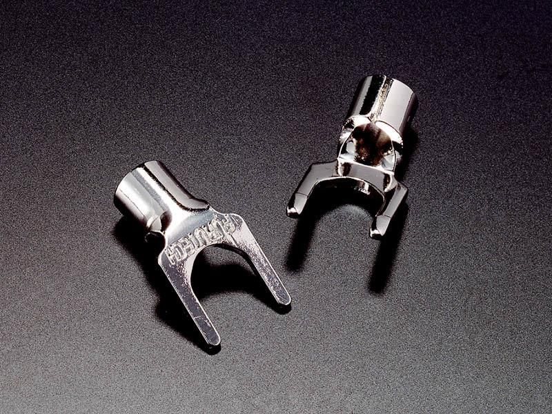 Widełki wykonane z miedzi PCOCC pokrytej rodem. Mocowanie przewodu za pomocą dwóch śrub. Maksymalna średnica przewodnika - 6 mm.