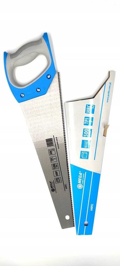 Mega piła płatnica 500mm, 7 zębów/cal (64092) Piła płatnica marki Mega to produkt który spełnia wysokie wymagania w pracowniach stolarskich i firmach budowlanych Piła posiada hartowane zęby o twardości 50-54 HRC Rękojeść zbudowana jest z dwuskładnikowego tworzywa oraz posiada wkładkę antypoślizgową dzięki czemu chwyt się nie ześlizguje Płatnica nadaje się do cięcia zgrubnego drewna i płyty wiórowej Ilość zębów: 7 zębów na cal Rodzaj: Piy patnice