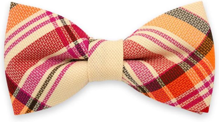 Mucha męska w beżową, pomarańczową i czerwoną kratkę