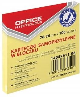 Bloczek samoprzylepny OFFICE PRODUCTS 76x76mm 100 kart jasnożółte 12 szt. Zestaw 12 bloczków karteczek Uniwersalne karteczki, w żółtym neutralnym kolorze, idealne do przekazywania wiadomości Karteczki samoprzylepne w najpopularniejszym formacie Ilość karteczek w 1 bloczku: 100 w rozmiarze 76x76mm …