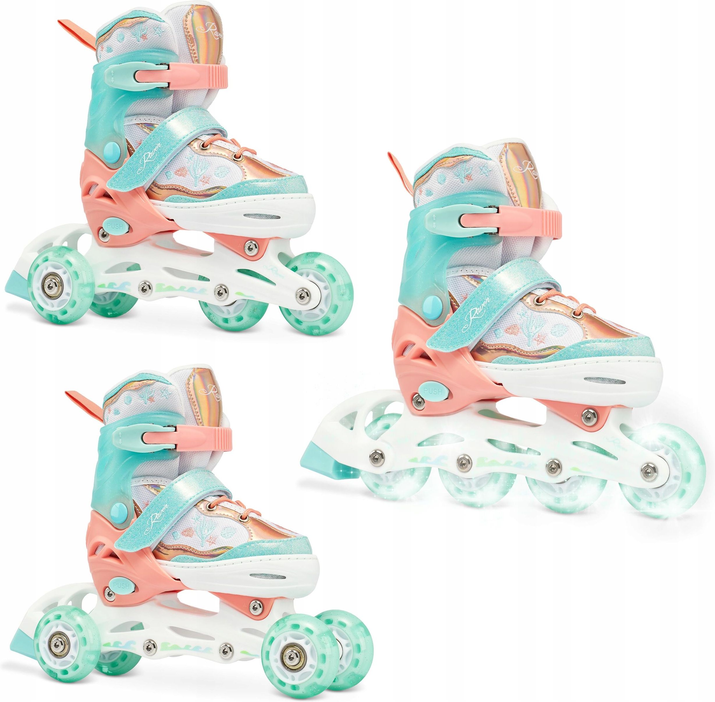 Raven Rolki Wrotki 3W1 Regulowane Isla Orange/Mint 30-33 Kółka Led Szepietowo