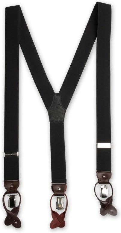 Klasyczne czarne szelki męskie z zapięciem na żabki i guziki