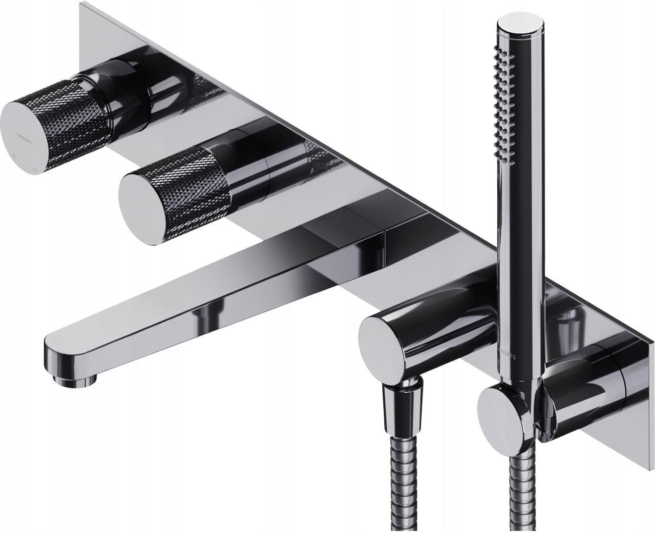 CONTOUR | bateria wannowa 5-otworowa podtynkowa Kolor: chrom (CR) Bateria wannowa podtynkowa z kolekcji OMNIRES CONTOUR, ze zintegrowaną rączką prysznicową, intryguje ekstrawagancką formą i ozdobnymi detalami. Oszczędny, architektoniczny wzór z diamentowym frezowaniem zachwyca wyrafinowanym zestawieniem faktur i perfekcyjnym wykonaniem. Symetryczna forma baterii perfekcyjne współgra z wanną, tworząc harmonijną kompozycję. Montaż podtynkowy gwarantuje oszczędność miejsca, a także łatwość czyszczenia. Bateria została wykonana z wysokogatunkowego mosiądzu oraz wyposażona w najwyższej jakości głowicę ceramiczną. Chromowana, lśniąca powierzchnia produktu jest uniwersalnym wykończeniem o srebrzystej barwie. Projekt: Paulina Shacalis, Studio OMNIRES Nagrody: Red Dot Design Award, Must Have Wyróżnienia: Dobry Wzór rozmiar rozety: 48 x 8 cm zasięg wylewki: 20,5 cm minimalna głębokość zabudowy: 7 cm dwa wejścia (na wodę ciepłą i zimną): 1/2” rączka prysznicowa mosiężna, 1-funkcyjna wąż prysznicowy w osłonie stalowej, długość: 125 cm element podtynkowy w komplecie UWAGA! Przez sytuację gospodarczą deklarowany czas wysyłki może się wydłużyć, sprawdź dostępność przed zakupem!