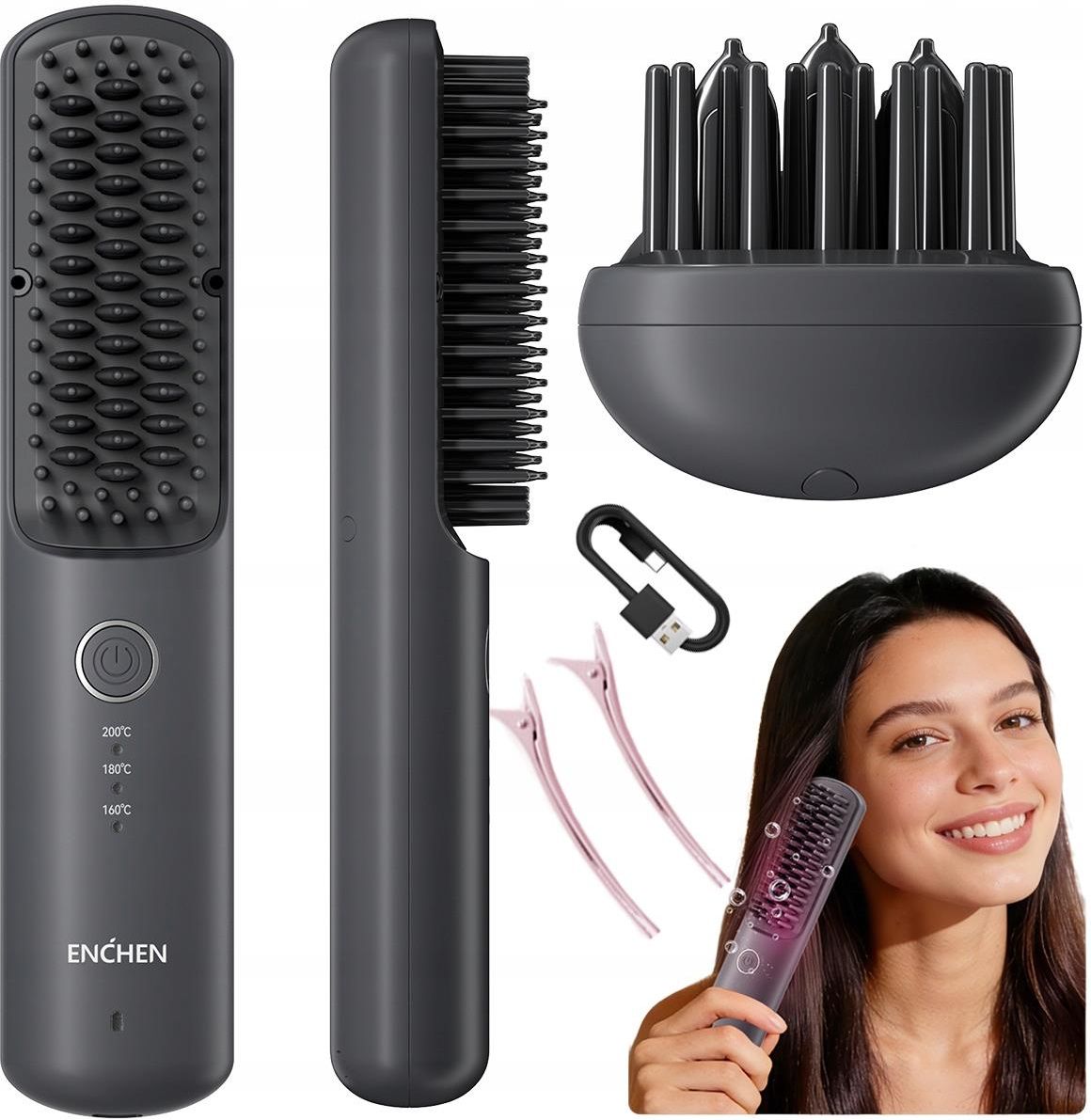 Szczotka prostująca JONIZACJA Bezprzewodowa do prostowania ENCHEN H6 Bezprzewodowa konstrukcja i nowoczesne rozwiązania technologiczne sprawiają, że stylizacja staje się prostsza, szybsza i bardziej komfortowa. Wbudowany akumulator zapewnia mobilność i wygodę użytkowania bez konieczności podłączania do prądu Regulacja temperatury w zakresie 160°C–200°C umożliwia dostosowanie urządzenia do indywidualnych potrzeb i typów włosów Funkcja szybkiego nagrzewania, 200 stopni w 20 sekund! Jony ujemne pomagają zredukować puszenie się włosów i nadają im gładkość Funkcja automatycznego wyłączania po 15 minutach zwiększa bezpieczeństwo i oszczędność energii Dzięki niewielkim rozmiarom i bezprzewodowemu działaniu urządzenie doskonale nadaje się do użytku w podróży Waga zaledwie 213g Ładowanie przez USB-C współpracujące z uniwersalnymi ładowarkami 3 godziny ładowania zapewnia ok. 45 minut pracy Aukcja dotyczy szczotki w kolorze szarym. Bezprzewodowa szczotka prostująca do włosów - elektryczna szczotka, która jednocześnie rozczesuje i prostuje włosy 200 milionów jonów ujemnych – gładkie i lśniące włosy redukcja puszenia i elektryzowania włosów wygładzenie struktury włosa i domknięcie łusek większy połysk i miękkość w dotyku pomoc w utrzymaniu wilgoci we włosach poprawa wyglądu włosów zniszczonych stylizacją Technologia jonów ujemnych sprawia, że włosy po stylizacji są wyraźnie gładsze, bardziej lśniące i wyglądają na zdrowsze. Idealne rozwiązanie do codziennej, bezpiecznej stylizacji bez efektu puszenia. Bezpieczna i skuteczna stylizacja włosów konstrukcja Anti-Scald – podwójna ochrona skóry głowy dzięki specjalnemu grzebieniowi z krzyżowym układem ząbków ząbki szczotki z powłoką wygładzającą – wygładzają włosy, ograniczają puszenie i chronią ich strukturę ceramiczna grzałka MCH – szybkie nagrzewanie oraz stabilna, równomierna temperatura podczas stylizacji Przemyślana budowa szczotki zapewnia bezpieczeństwo użytkowania, skuteczne prostowanie i ochronę włosów. Idealne połączenie komfortu, wydajności i delikatnej pielęgnacji na co dzień. 3-stopniowa regulacja temperatury – dopasowanie do każdego typu włosów 160°C – idealna do włosów cienkich, delikatnych oraz rozjaśnianych 180°C – odpowiednia dla włosów normalnych i o naturalnej teksturze 200°C – przeznaczona do włosów grubych, falowanych i kręconych Trzystopniowa kontrola temperatury pozwala precyzyjnie dopasować poziom ciepła do rodzaju włosów, zapewniając skuteczną stylizację przy jednoczesnym ograniczeniu ryzyka przegrzewania i uszkodzeń. Błyskawiczne nagrzewanie do 200°C w zaledwie 20 sekund – urządzenie gotowe do użycia niemal od razu po włączeniu czytelne poziomy temperatury 160°C, 180°C i 200°C – łatwy wybór odpowiedniego ustawienia wygodne i intuicyjne sterowanie Przemyślana konstrukcja szczotki oraz szybkie osiąganie wysokiej temperatury sprawiają, że stylizacja jest wygodna i oszczędza czas. To praktyczne rozwiązanie dla osób, które oczekują prostoty, funkcjonalności i nowoczesnego wyglądu urządzenia. Bezpieczna konstrukcja zapobiegająca oparzeniom specjalny design zapobiegający poparzeniom – szczotka zaprojektowana z myślą o ochronie skóry osłonięte elementy grzewcze – ciepło działa wewnątrz szczotki, a zewnętrzne ząbki tworzą barierę ochronną możliwość bezpiecznego użycia w okolicach grzywki i skóry głowy gęsto rozmieszczone ząbki szczotki – kontrola pasm i stabilne prowadzenie włosów Przemyślana budowa szczotki zwiększa bezpieczeństwo podczas stylizacji i pozwala na komfortowe użytkowanie nawet w newralgicznych miejscach. To rozwiązanie stworzone z myślą o wygodzie i spokoju podczas codziennej stylizacji włosów. Automatyczne wyłączanie po 15 minutach urządzenie automatycznie wyłącza się po 15 minutach bezczynności zwiększone bezpieczeństwo użytkowania – brak ryzyka pozostawienia włączonej szczotki spokój i wygoda podczas codziennego użytkowania Automatyczne wyłączanie po 15 minutach to praktyczne zabezpieczenie, które podnosi komfort i bezpieczeństwo korzystania z urządzenia, szczególnie w codziennym, domowym użytkowaniu. Akumulatorowa szczotka prostująca – ładowanie USB Type-C wbudowany akumulator – możliwość bezprzewodowego użytkowania ładowanie przez port USB Type-C – wygodne i nowoczesne rozwiązanie czas ładowania: około 3 godziny czas pracy: do 45 minut na jednym ładowaniu Bezprzewodowa konstrukcja oraz ładowanie przez USB Type-C zapewniają swobodę użytkowania i wygodę zarówno w domu, jak i w podróży. Długi czas pracy pozwala na komfortową stylizację bez konieczności częstego ładowania urządzenia. Uniwersalna szczotka prostująca pozwala dopasować stylizację do własnych potrzeb i fryzury. Sprawdza się zarówno przy wygładzaniu włosów, jak i przy modelowaniu grzywki czy nadawaniu objętości u nasady, umożliwiając tworzenie różnych stylów przy użyciu jednego urządzenia. jedno urządzenie do wielu efektów stylizacji możliwość prostowania włosów uniesienie włosów u nasady stylizacja grzywki nadawanie naturalnego kształtu i lekkości końcówkom Specyfikacja techniczna Nazwa produktu: Szczotka prostująca do włosów Model: H6 Zasilanie / wejście: 5 V ⎓ 2 A Czas ładowania: ok. 3 godziny Wysokość: 200 mm Szerokość: 43 mm Waga: 213g Rodzaj ładowania: USB Kolor: szary