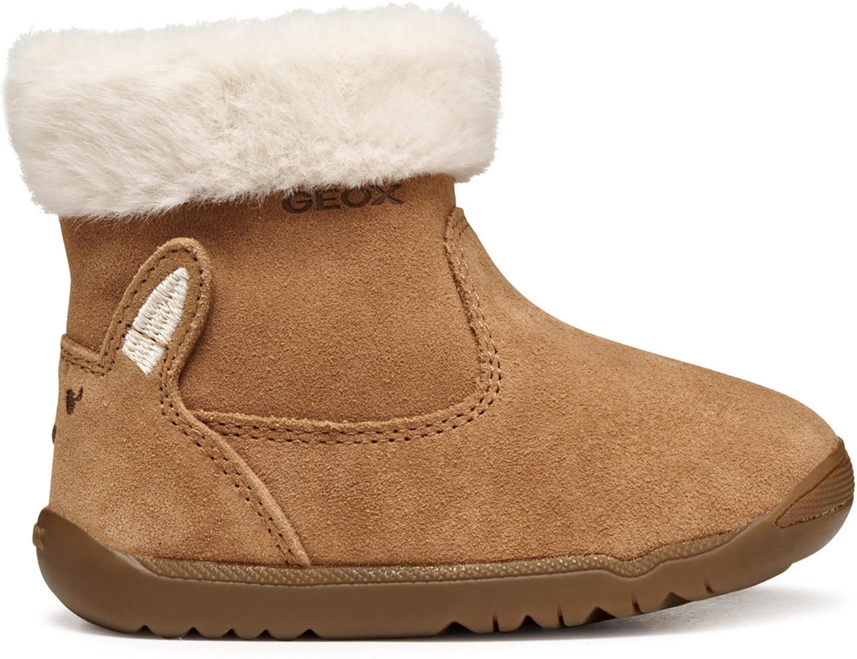 GEOX KOZAKI DZIEWCZĘCE B564PA 00022 22 GEOX Stylowe, lekkie i elastyczne zimowe kozaczki dla dziewczynki od włoskiego producenta GEOX to połączenie elegancji, wygody i innowacyjnej technologii oddychającej. Idealnie sprawdzą się jako pierwsze buty – wspierają prawidłowy rozwój stopy i zapewniają komfort podczas codziennych spacerów w chłodne dni. Koniakowa cholewka nadaje bucikom klasycznego, uniwersalnego charakteru, a ocieplina z naturalnej wełny gwarantuje ciepło nawet w mroźne dni. Dzięki lekkiej i elastycznej podeszwie buty nie ograniczają ruchów dziecka i pozwalają na swobodną zabawę. Technologia Geox Respira sprawia, że stopy pozostają suche – gumowa podeszwa wyposażona jest w specjalne otwory wentylacyjne, a umieszczona wewnątrz membrana z mikroporami skutecznie odprowadza pot na zewnątrz, nie przepuszczając wilgoci do środka. Cechy zimowych kozaczków GEOX: lekkie i elastyczne buty dla dziewczynki, koniakowa kolorystyka – elegancka i uniwersalna, technologia Geox Respira – oddychająca, wodoodporna podeszwa, naturalna ocieplina z wełny – ciepło w zimowe dni, podeszwa wspierająca prawidłowy rozwój stopy, idealne jako pierwsze buty dla dziecka.Dlaczego warto wybrać kozaczki GEOX?GEOX zimowe kozaczki koniakowe dla dziewczynki – styl, wygoda i ochrona w mroźne dni.TABELA ROZMIARÓWROZMIAR212223242526DŁUGOŚĆ WKŁADKI13,013,714,415,015,716,4 Zapewniają suchość i ciepło w zimowych warunkach. Są lekkie i elastyczne – idealne dla małych dzieci. Wykorzystują opatentowaną technologię GEOX dla maksymalnego komfortu. ROZMIAR: 22 GEOX – dziewczęce zimowe kozaczki koniakowe