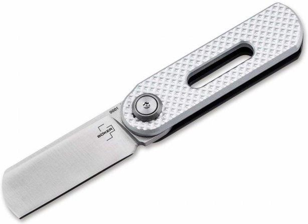 Opis Boker Plus Ovalmoon Swivel, zaprojektowany przez Darriela Castona, to kompaktowy i innowacyjny nóż składany o wyjątkowym, przemysłowym charakterze. Unikalny mechanizm otwierania i zamykania opiera się na obróceniu dwóch połówek rękojeści, które są następnie ponownie połączone za pomocą magnetycznej blokady. Ostrze typu sheepfoot, wykonane z wytrzymałej stali D2 i szlifowane jednostronnie (chisel grind), doskonale nadaje się do drobnych codziennych zadań cięcia. Dwukolorowe aluminiowe rękojeści mają antypoślizgową fakturę przypominającą przemysłową blachę, co dodaje nożowi surowego uroku. Charakterystyczny wycięty otwór w rękojeści zmniejsza wagę i ułatwia obsługę sprytnego mechanizmu składania. Parametry Długość całkowita: 11,60 cm Długość ostrza: 4,70 cm Grubość ostrza: 2,95 mm Waga: 34 g Materiał ostrza: D2 Materiał rękojeści: Aluminium Mechanizm otwierania: Manualny (brak klasycznego otwieracza) Typ blokady: Mechanizm składany z blokadą magnetyczną Numer produktu: 01BO498 Designer: Darriel Caston