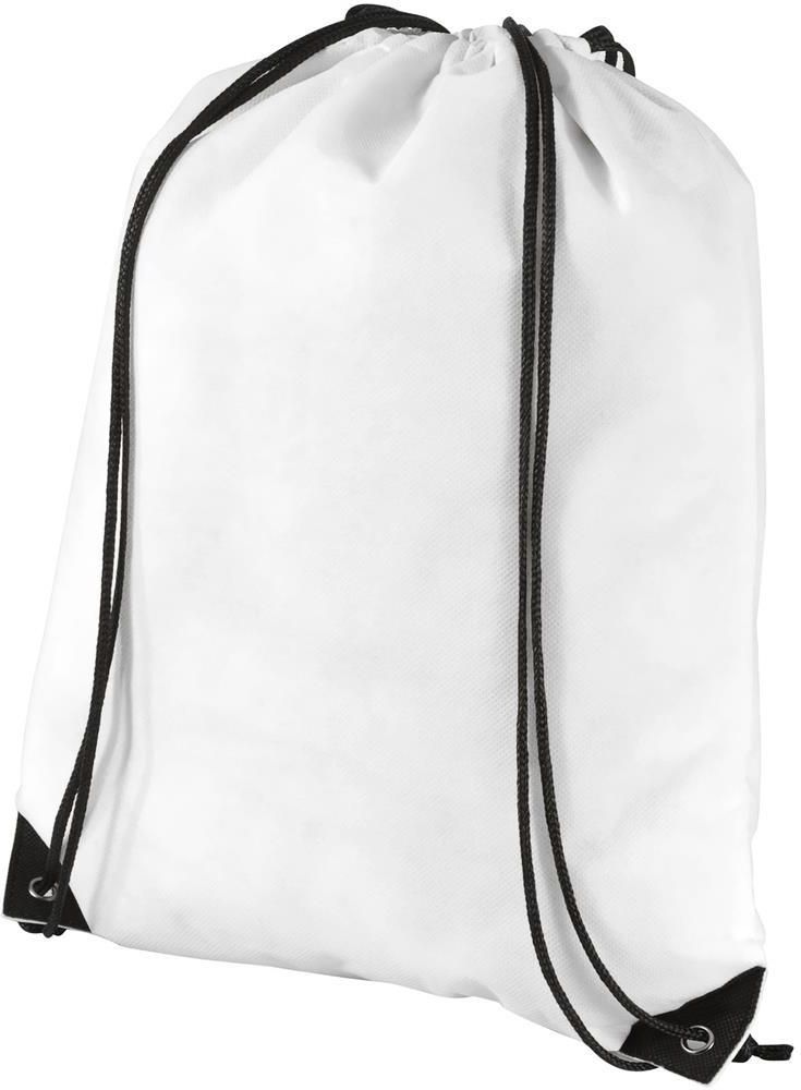 Plecak non woven Evergreen premium Stan: Nowy Waga (g): 35 Wymiary (cm): 34 x 42 cm Kolory: Biały Duża główna przegroda zamykana ściąganym sznurkiem. Sznurek zaprojektowany tak, by plecak można było nosić również na ramieniu.