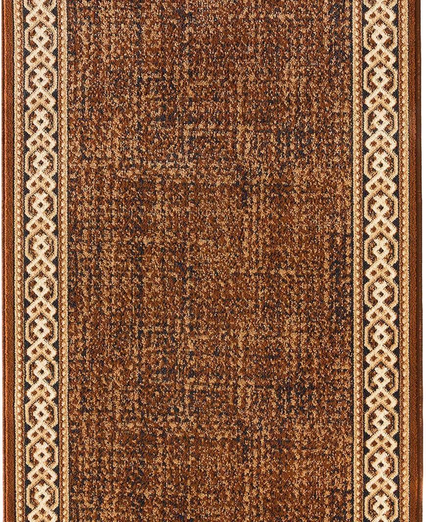 W pomieszczeniach często użytkowanych takich jak przedpokój warto zastosować chodnik RYTM jasny brąz ze względu na materiał z jakiego zostały wykonane. Włókno heat set jest bardzo wytrzymałe i sprężyste. Materiał ten wpływa na odporność na wycieranie i łatwość w czyszczeniu. Jasny brąz jest uniwersalnym kolorem pasującym do wielu wnętrz zarówno w stylu klasycznym jak i nowoczesnym. Elementem dekoracyjnym chodnika są pasy z ornamentami na bokach. Chodnik do przedpokoju ma szerokość 1 m i wysokość runa to 6 mm. Zakupiony model będzie fabrycznie obszyty z boku (po długości), zalecamy wykupienie usługi obszycia również po szerokości chodnika.