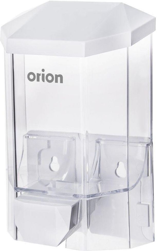 PRZYDATNY - Dozownik do mydła lub żelu o pojemności 430 ml. Dozownik ma wymiary 12 x 16,5 cm. WYTRZYMAŁY - Wykonany z wysokiej jakości tworzyw w przezroczystym oraz białym kolorze. ŚCIENNY - Dozownik jest przeznaczony do zawieszenia na ścianie, co pozwoli na wygodne dozowanie płynu. UNIWERSALNY - Znajdzie swoje zastosowanie w łazience lub kuchni. Możemy umieścić w nim płyn do mycia naczyń, ale również żel pod prysznic. ŁATWY MONTAŻ - Materiał montażowy dostępny w zestawie, pozwoli w łatwy sposób zamontować dozownik na ścianie. Dozownik do mydła w płynie lub płynu do mycia naczyń. Dzięki przezroczystej części pojemnika, możemy wygodnie obserwować pojemność mydła lub płynu. Zawieszony na ścianie w kuchni lub łazience zapewni wygodne korzystanie. Pojemnik jest świetną alternatywą dla klasycznych butelek z płynami. Oryginalny produkt czeskiej marki Orion. Wyprodukowano zgodnie z europejskimi standardami.
