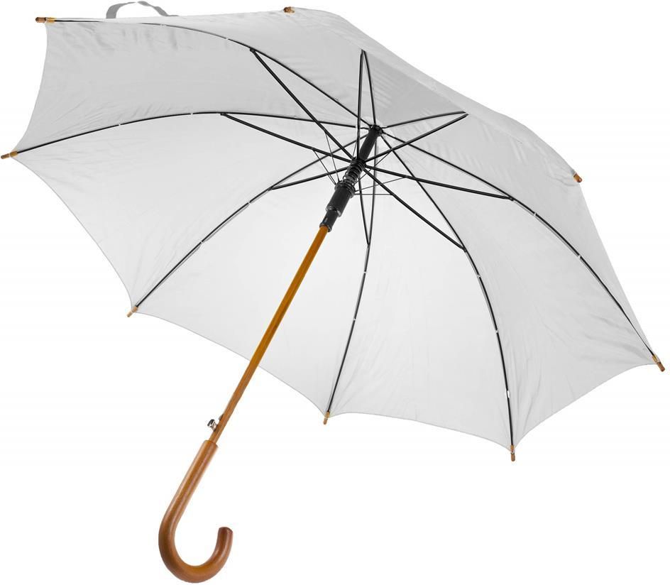 Budowa: Parasol automatyczny 23" z drewnianym trzonem i rączką, 8 paneli.